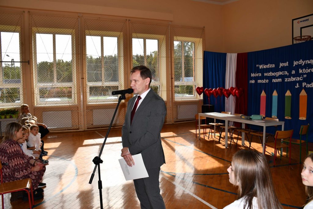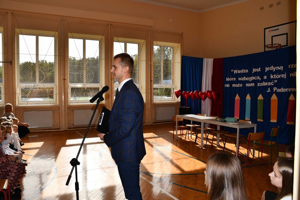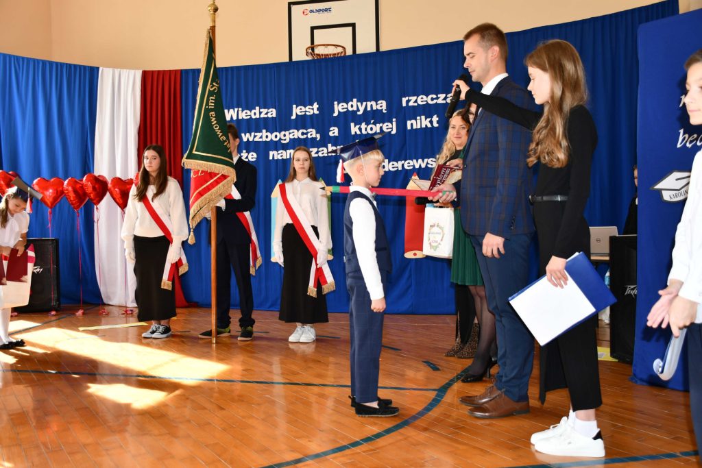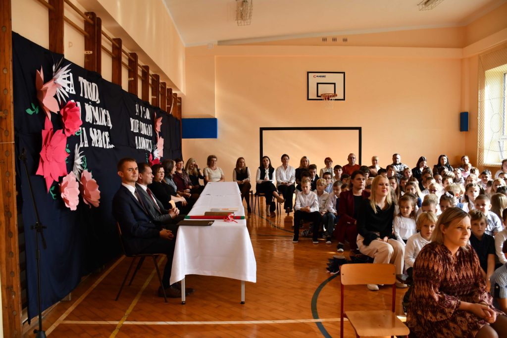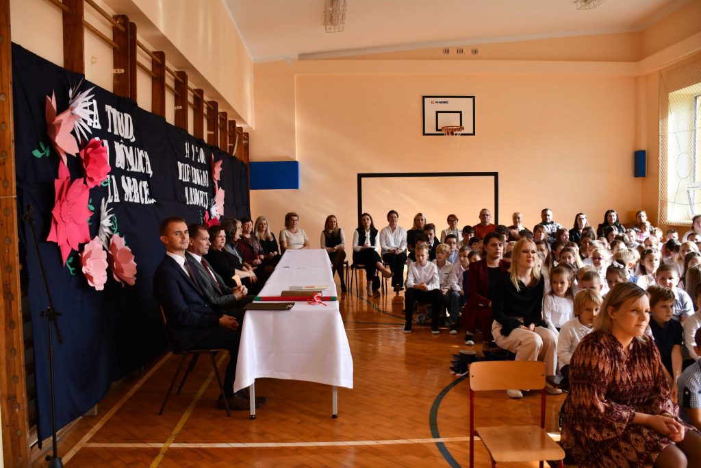 13. października w naszej szkole odbyła się uroczysta akademia z okazji Dnia Edukacji Narodowej, połączona z pasowaniem na ucznia. To wyjątkowe wydarzenie zgromadziło całą społeczność szkolną, a swoją obecnością zaszczycił nas Burmistrz Szczucina – pan Tomasz Bełzowski.