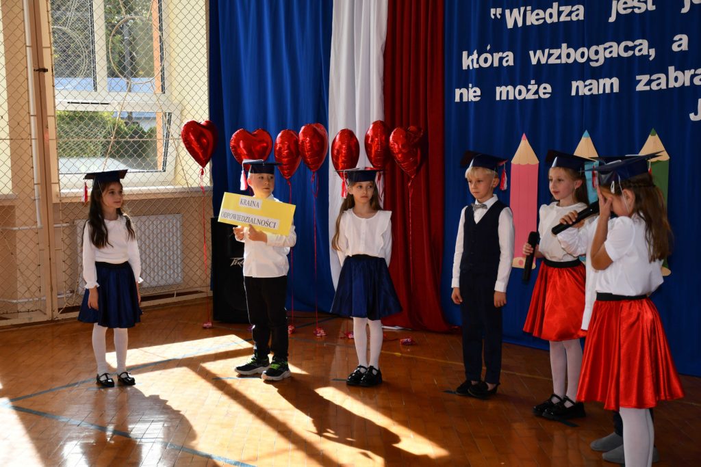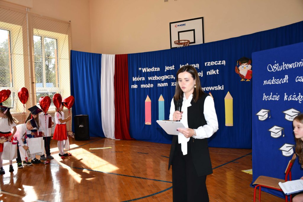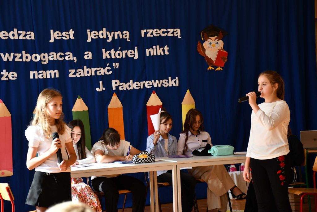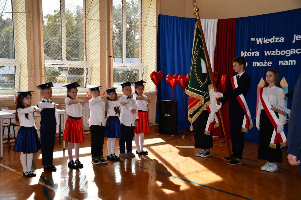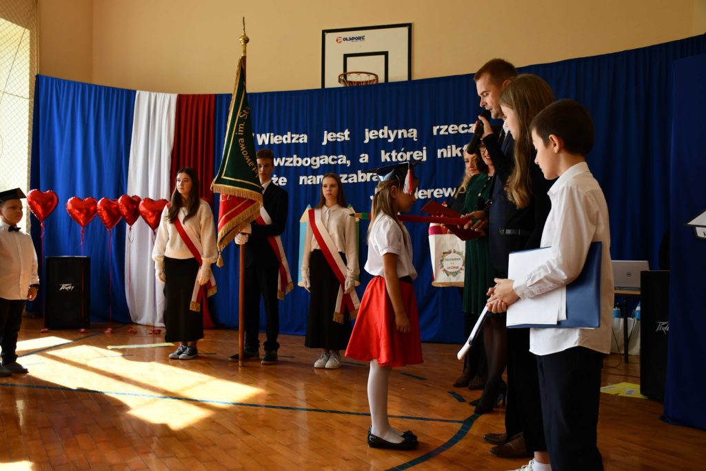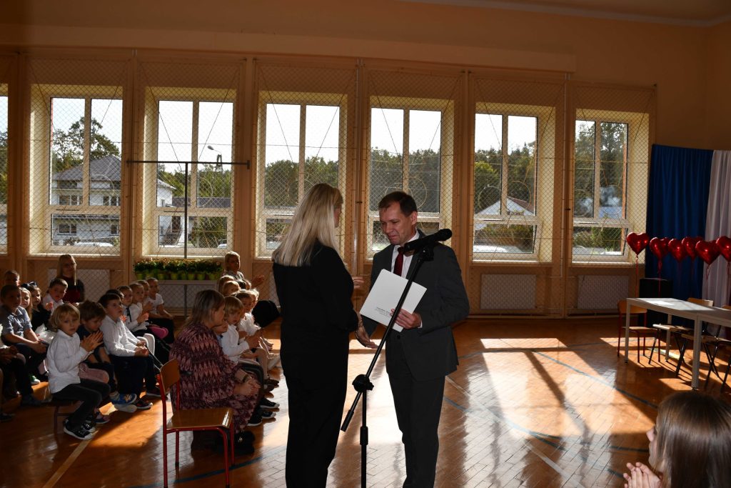 13. października w naszej szkole odbyła się uroczysta akademia z okazji Dnia Edukacji Narodowej, połączona z pasowaniem na ucznia. To wyjątkowe wydarzenie zgromadziło całą społeczność szkolną, a swoją obecnością zaszczycił nas Burmistrz Szczucina – pan Tomasz Bełzowski.