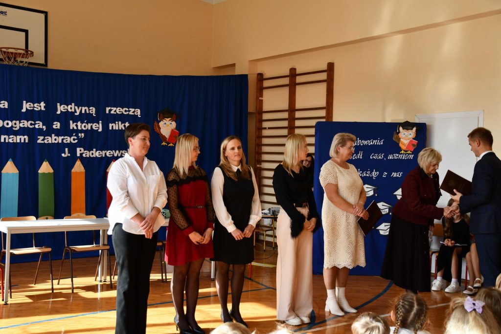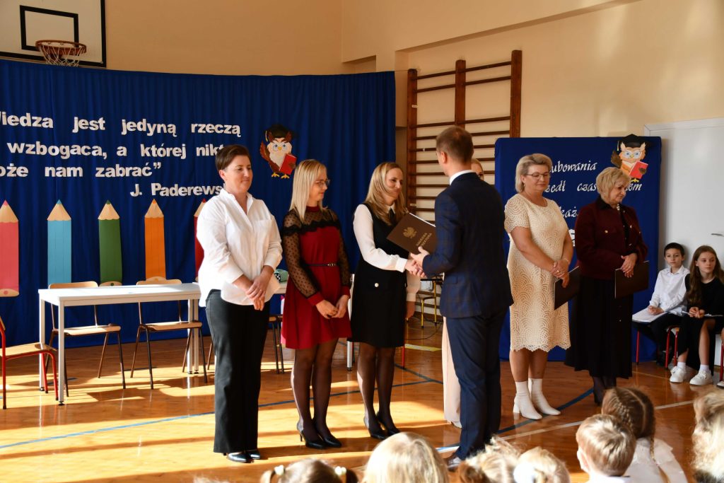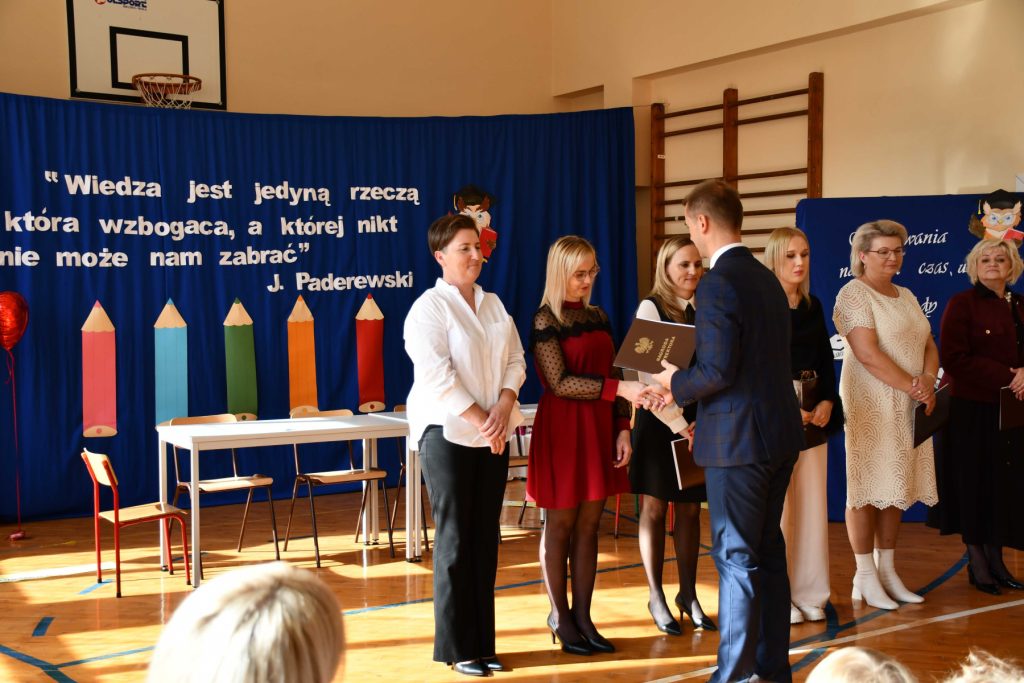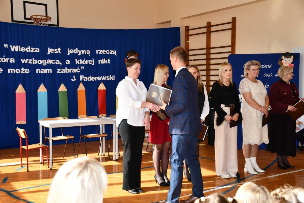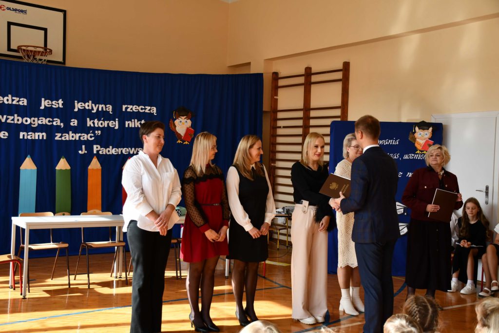 Z okazji Dnia Edukacji Narodowej nauczyciele naszej szkoły otrzymali wyróżnienia i nagrody za zaangażowanie, pasję i trud włożony w nauczanie oraz wychowanie dzieci i młodzieży. Pan Burmistrz Tomasz Bełzowski złożył dyrekcji, nauczycielom i pracownikom szkoły serdeczne życzenia oraz podziękowania za sumienną pracę, cierpliwość i oddanie w kształtowaniu młodego pokolenia.