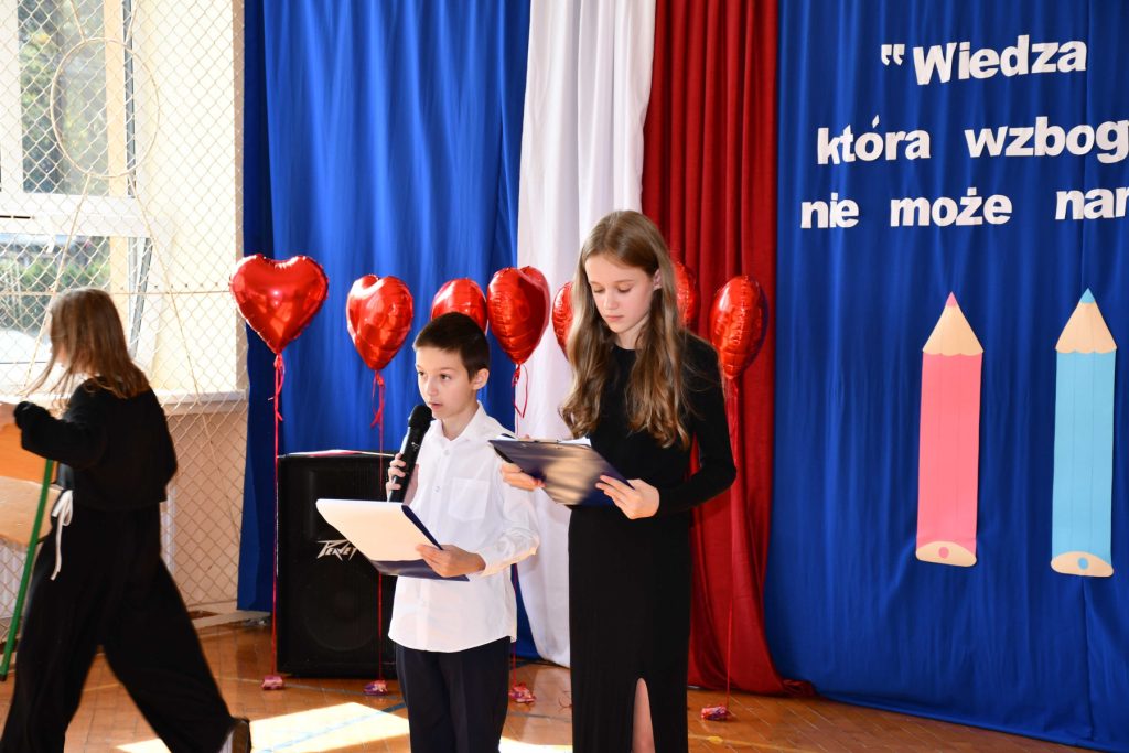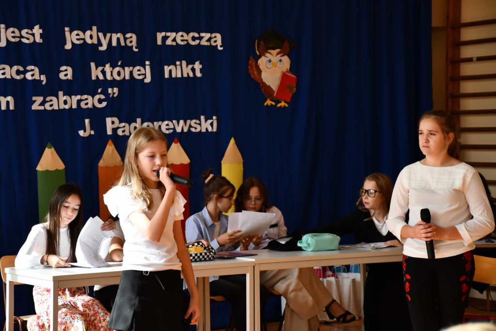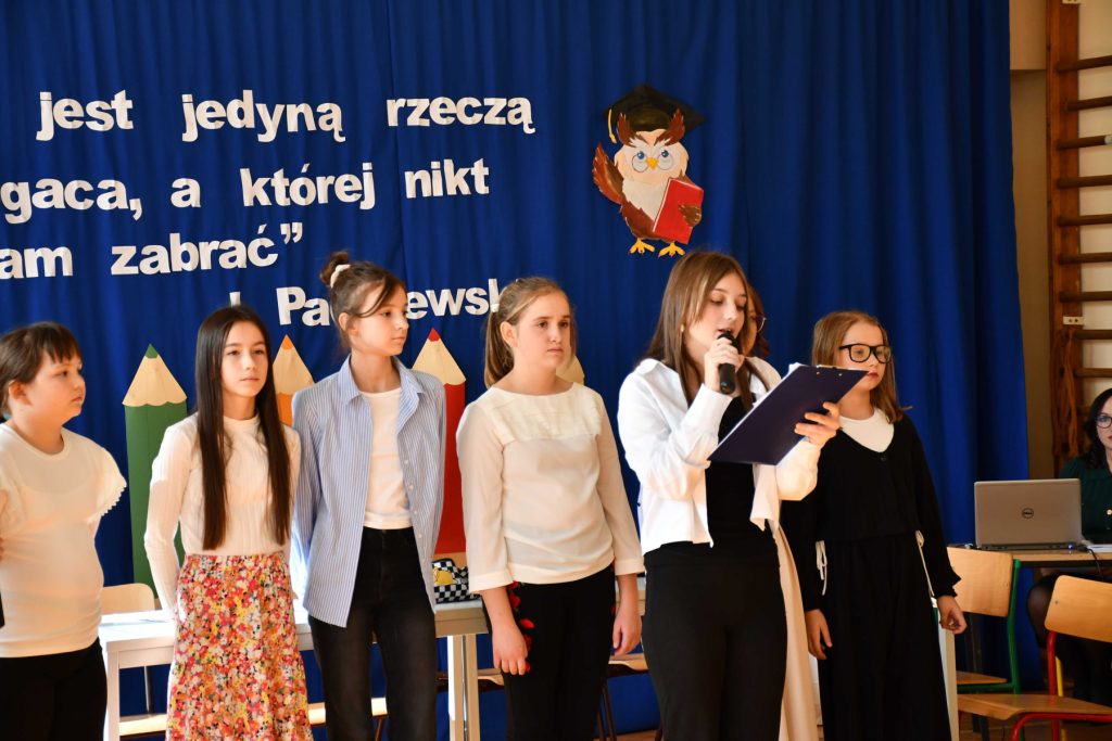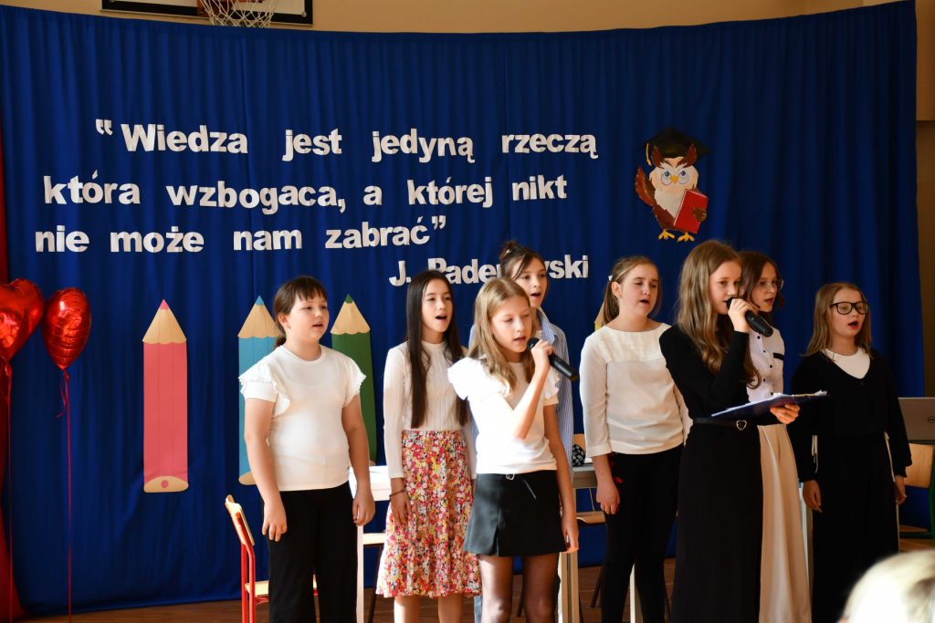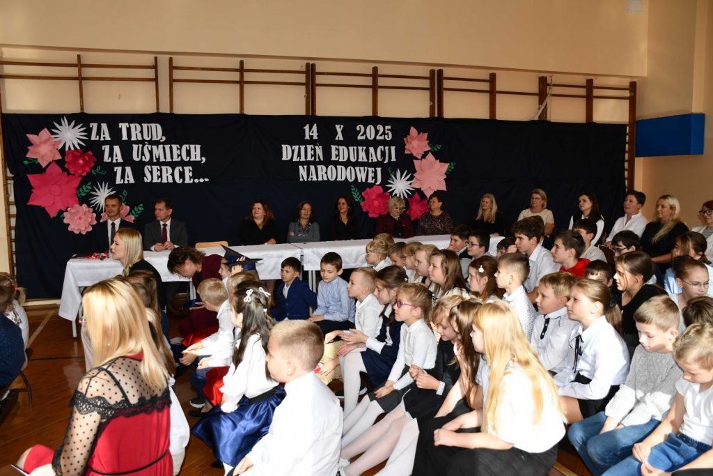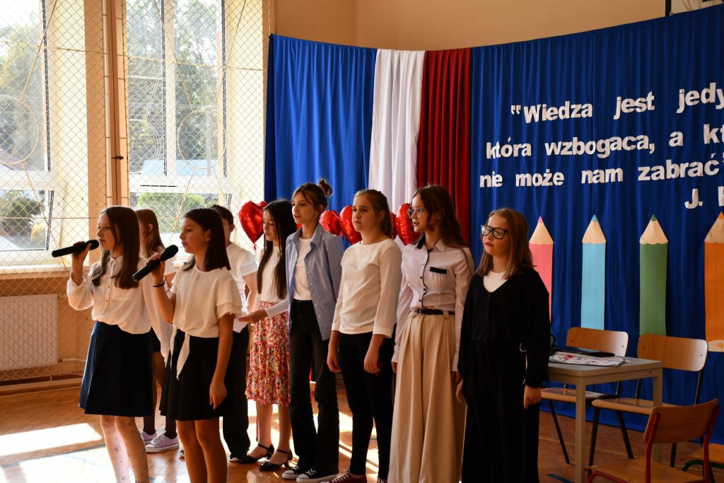 Uroczystość rozpoczęła część artystyczna, podczas której uczniowie zaprezentowali piosenki i wiersze z serdecznymi życzeniami dla nauczycieli. Występy wprowadziły wszystkich w radosny, a zarazem wzruszający nastrój.