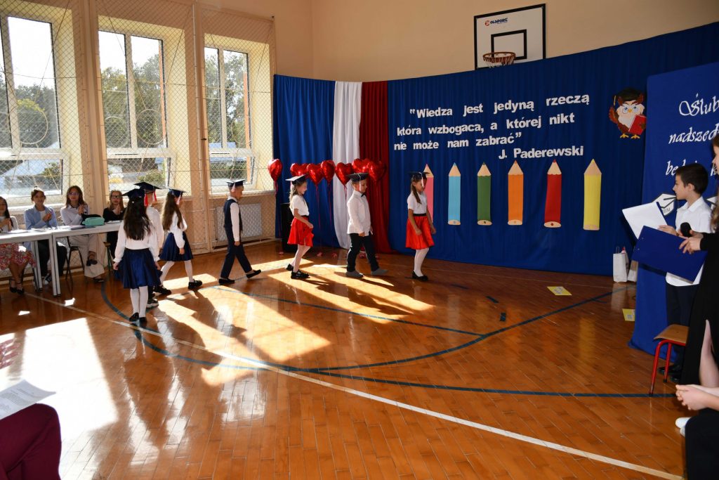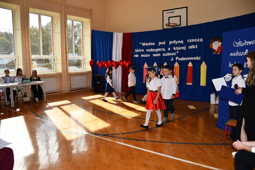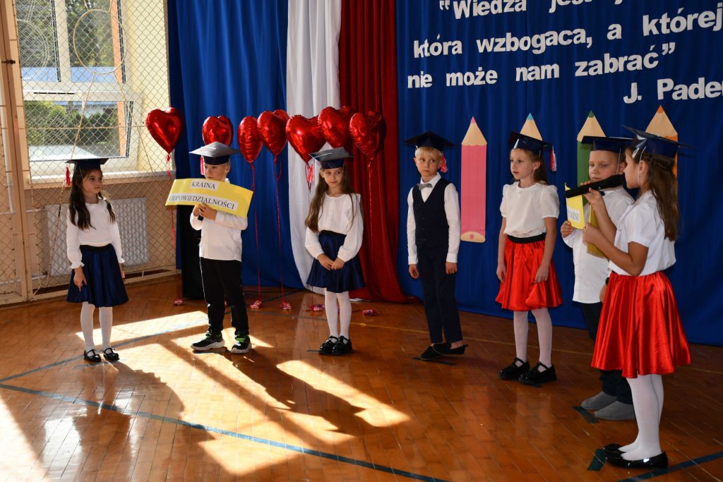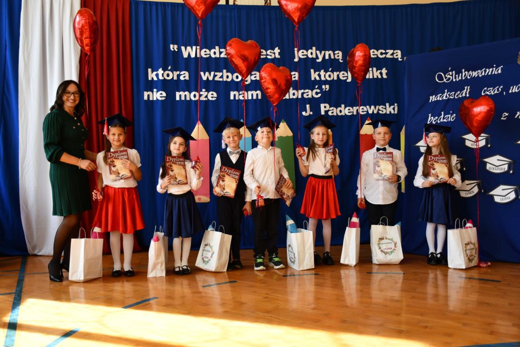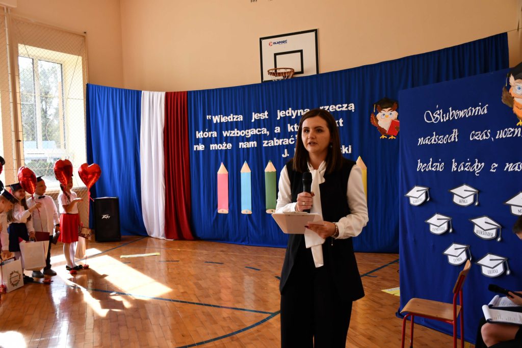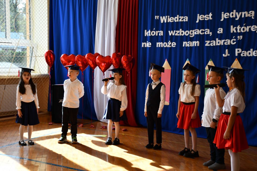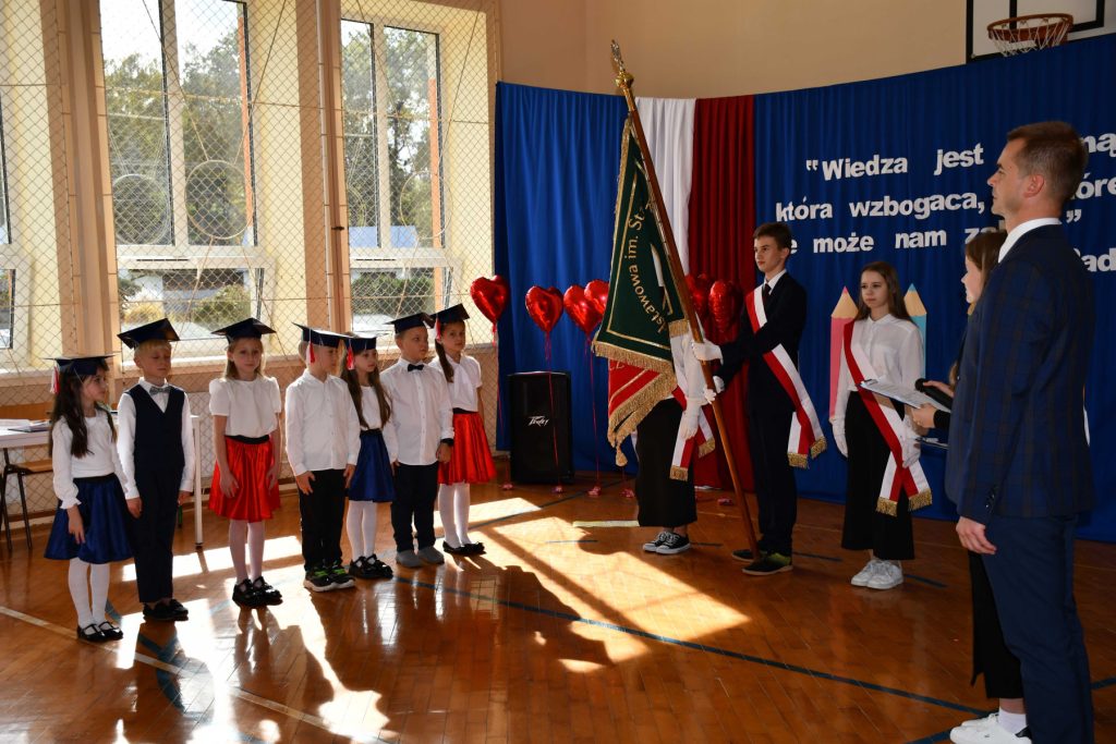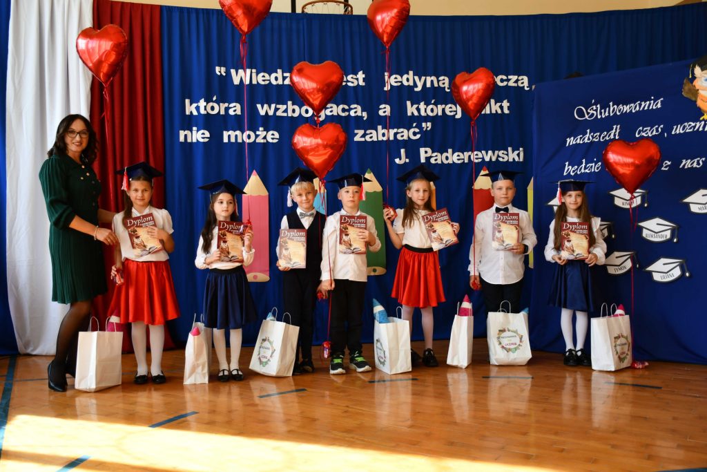 Był to szczególny dzień dla najmłodszych uczniów – siedmioro pierwszoklasistów złożyło uroczyste ślubowanie, po którym zostali oficjalnie przyjęci do grona społeczności szkolnej. Moment pasowania na ucznia był pełen emocji i dumy – zarówno dla dzieci, jak i ich rodziców.