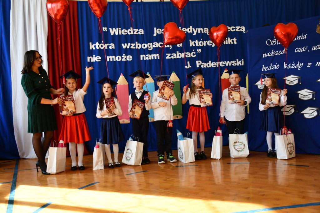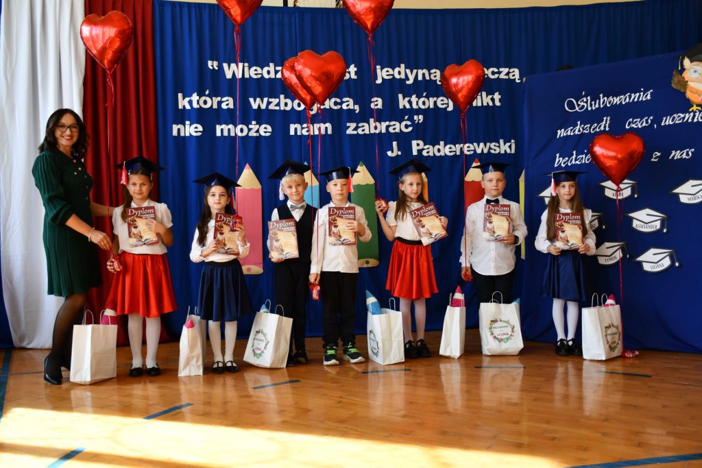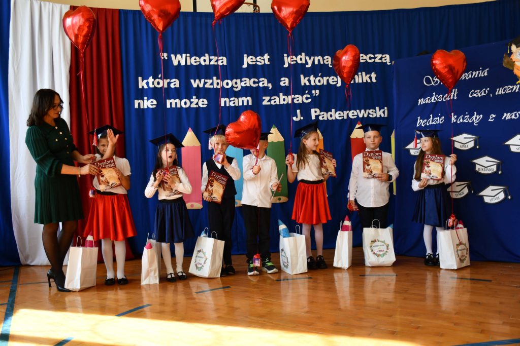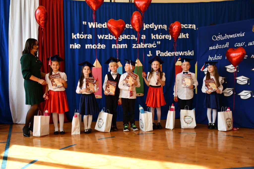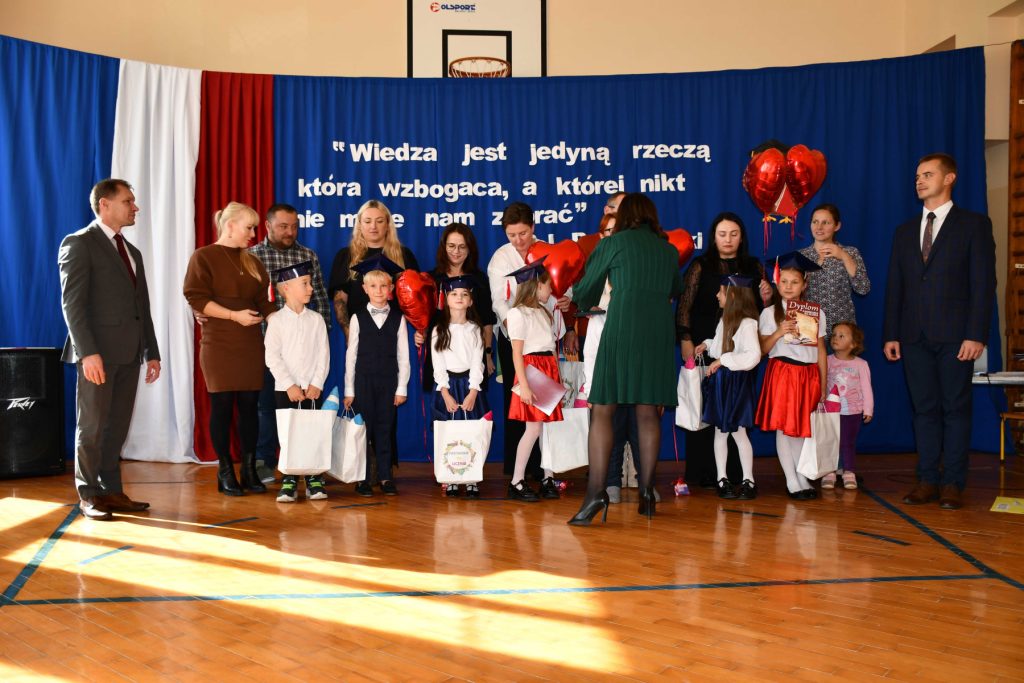 Na zakończenie uroczystości pierwszoklasiści otrzymali pamiątkowe upominki od wychowawczyni Barbary Czai oraz od rodziców. Dzień ten zwieńczył słodki poczęstunek, podczas którego uczniowie, rodzice i nauczyciele wspólnie świętowali to ważne wydarzenie.