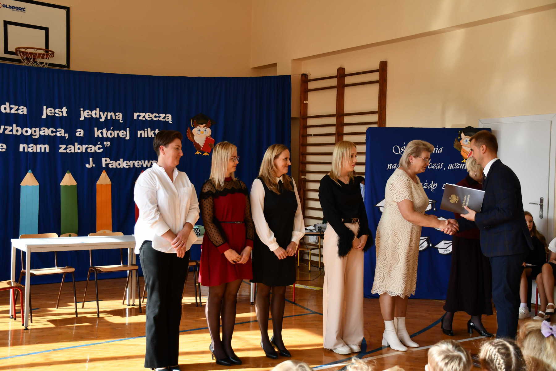 Z okazji Dnia Edukacji Narodowej nauczyciele naszej szkoły otrzymali wyróżnienia i nagrody za zaangażowanie, pasję i trud włożony w nauczanie oraz wychowanie dzieci i młodzieży. Pan Burmistrz Tomasz Bełzowski złożył dyrekcji, nauczycielom i pracownikom szkoły serdeczne życzenia oraz podziękowania za sumienną pracę, cierpliwość i oddanie w kształtowaniu młodego pokolenia.