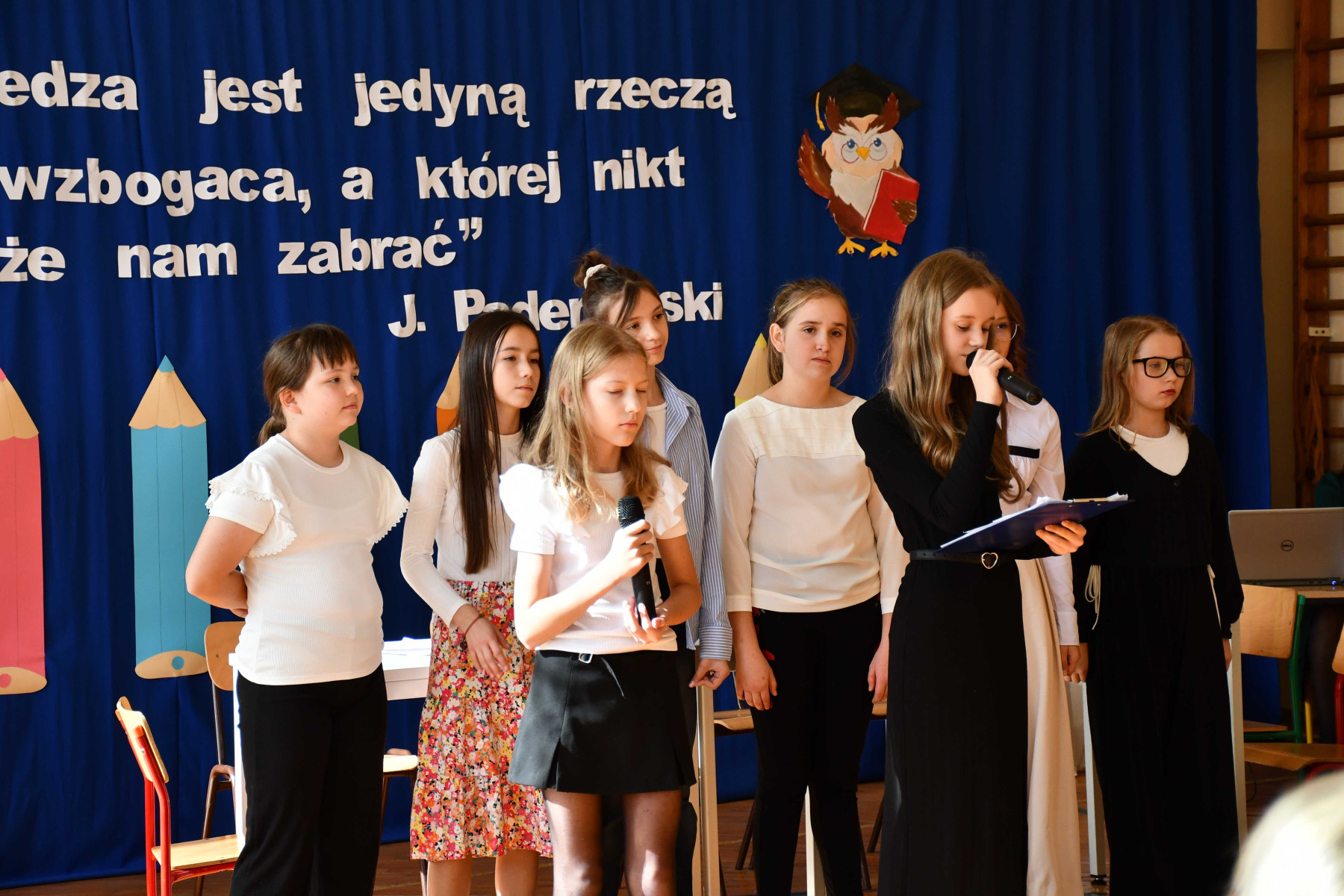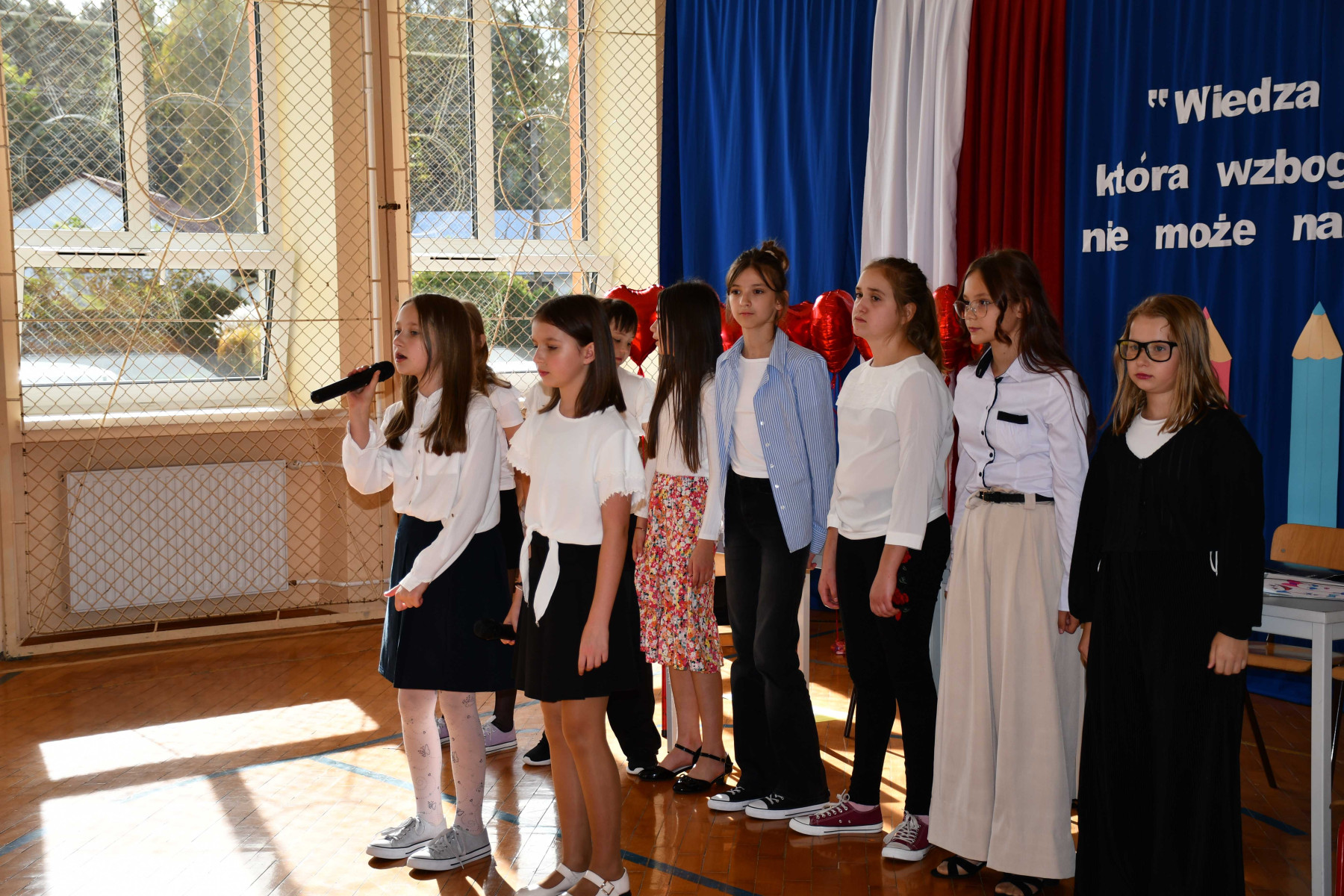 Uroczystość rozpoczęła część artystyczna, podczas której uczniowie zaprezentowali piosenki i wiersze z serdecznymi życzeniami dla nauczycieli. Występy wprowadziły wszystkich w radosny, a zarazem wzruszający nastrój.