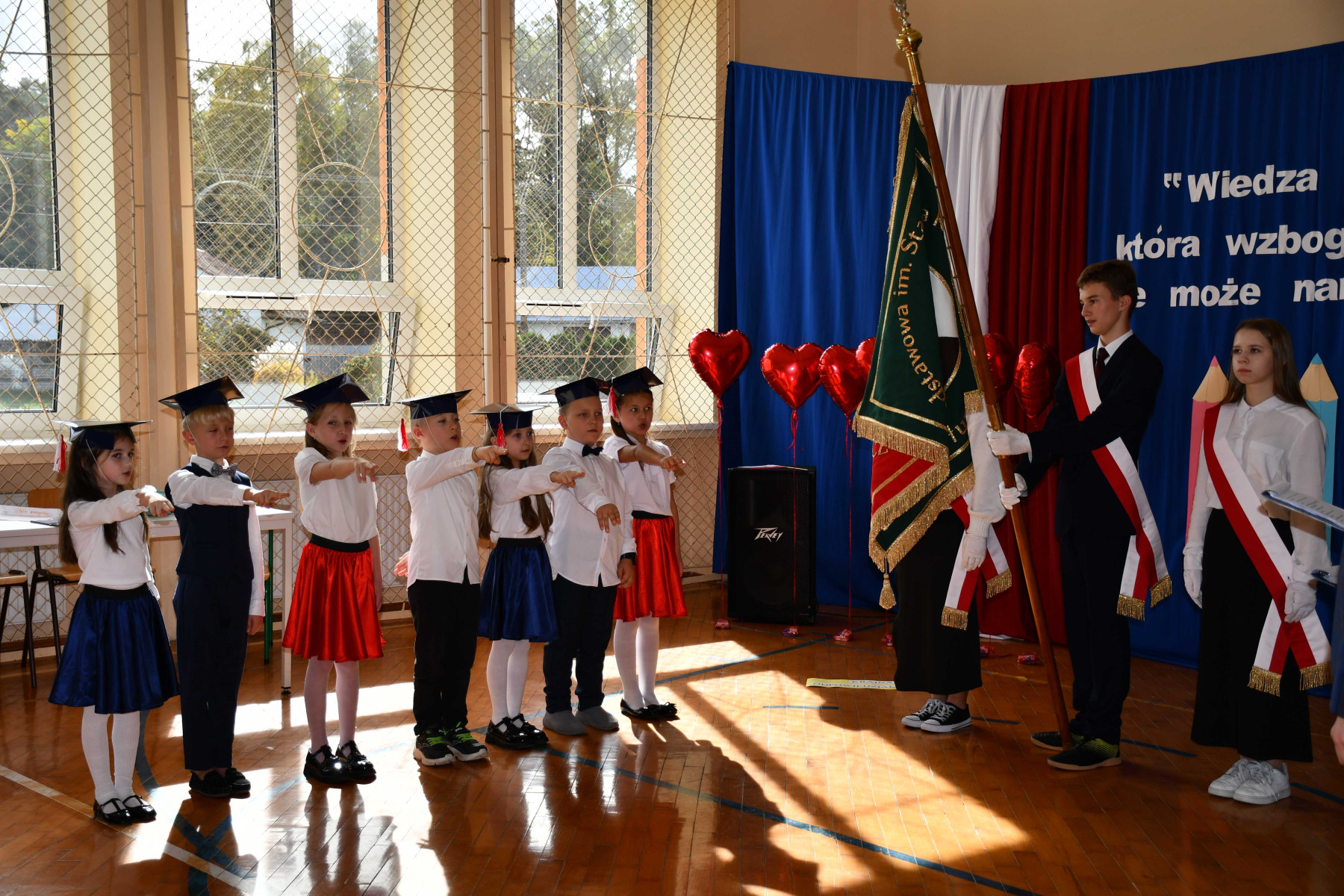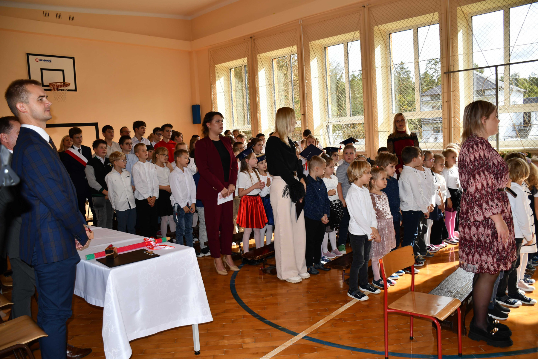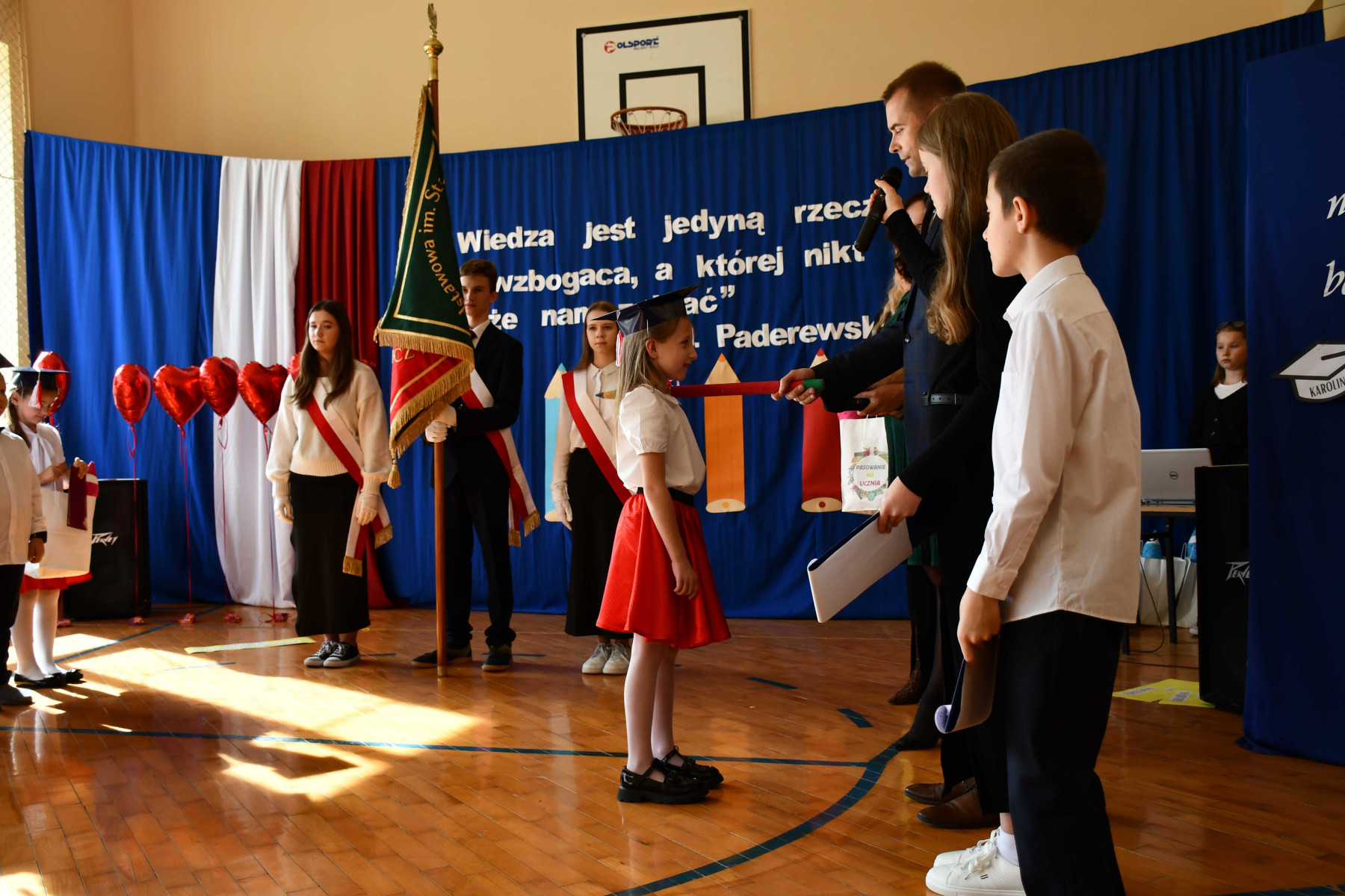 13. października w naszej szkole odbyła się uroczysta akademia z okazji Dnia Edukacji Narodowej, połączona z pasowaniem na ucznia. To wyjątkowe wydarzenie zgromadziło całą społeczność szkolną, a swoją obecnością zaszczycił nas Burmistrz Szczucina – pan Tomasz Bełzowski.