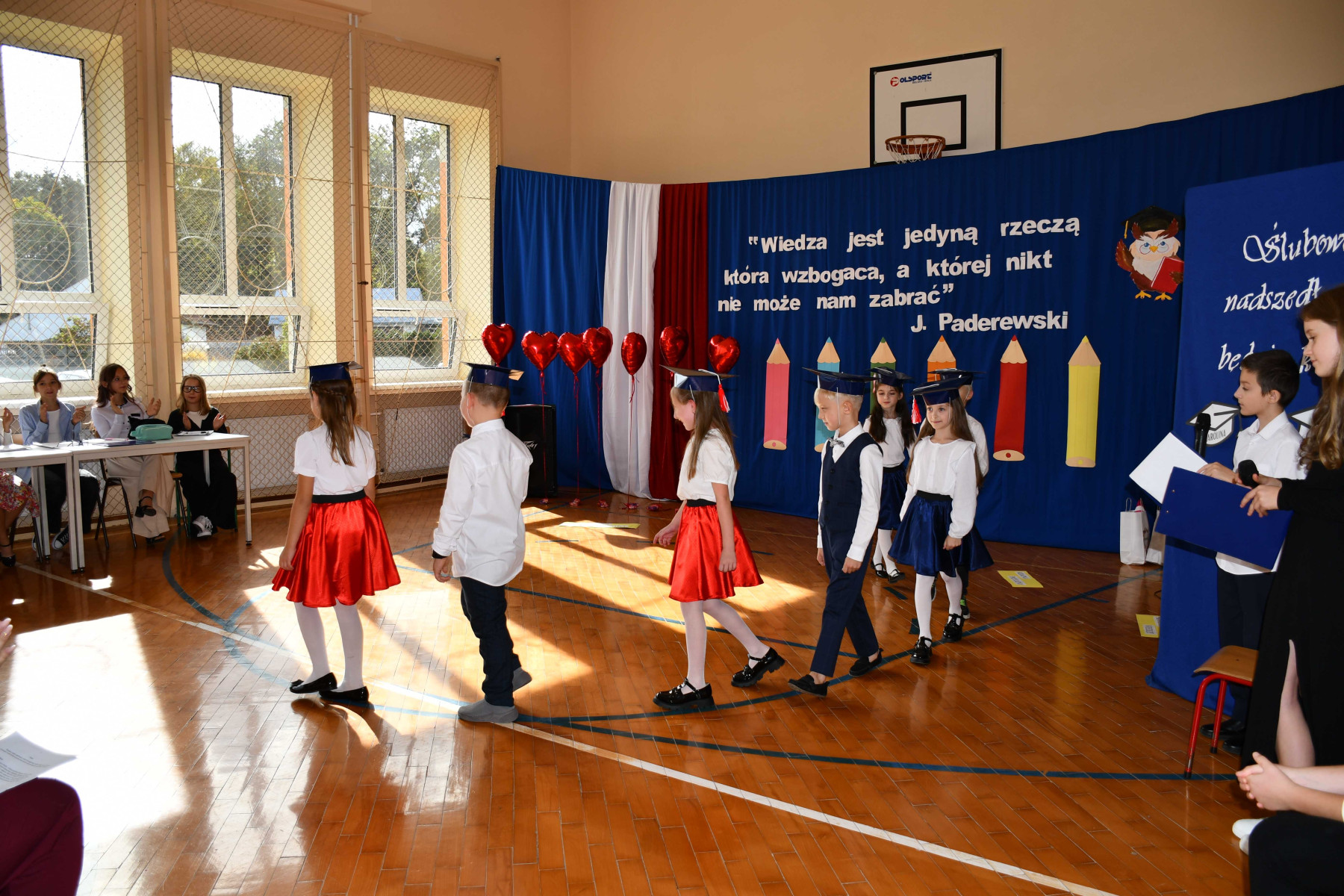 Był to szczególny dzień dla najmłodszych uczniów – siedmioro pierwszoklasistów złożyło uroczyste ślubowanie, po którym zostali oficjalnie przyjęci do grona społeczności szkolnej. Moment pasowania na ucznia był pełen emocji i dumy – zarówno dla dzieci, jak i ich rodziców.
