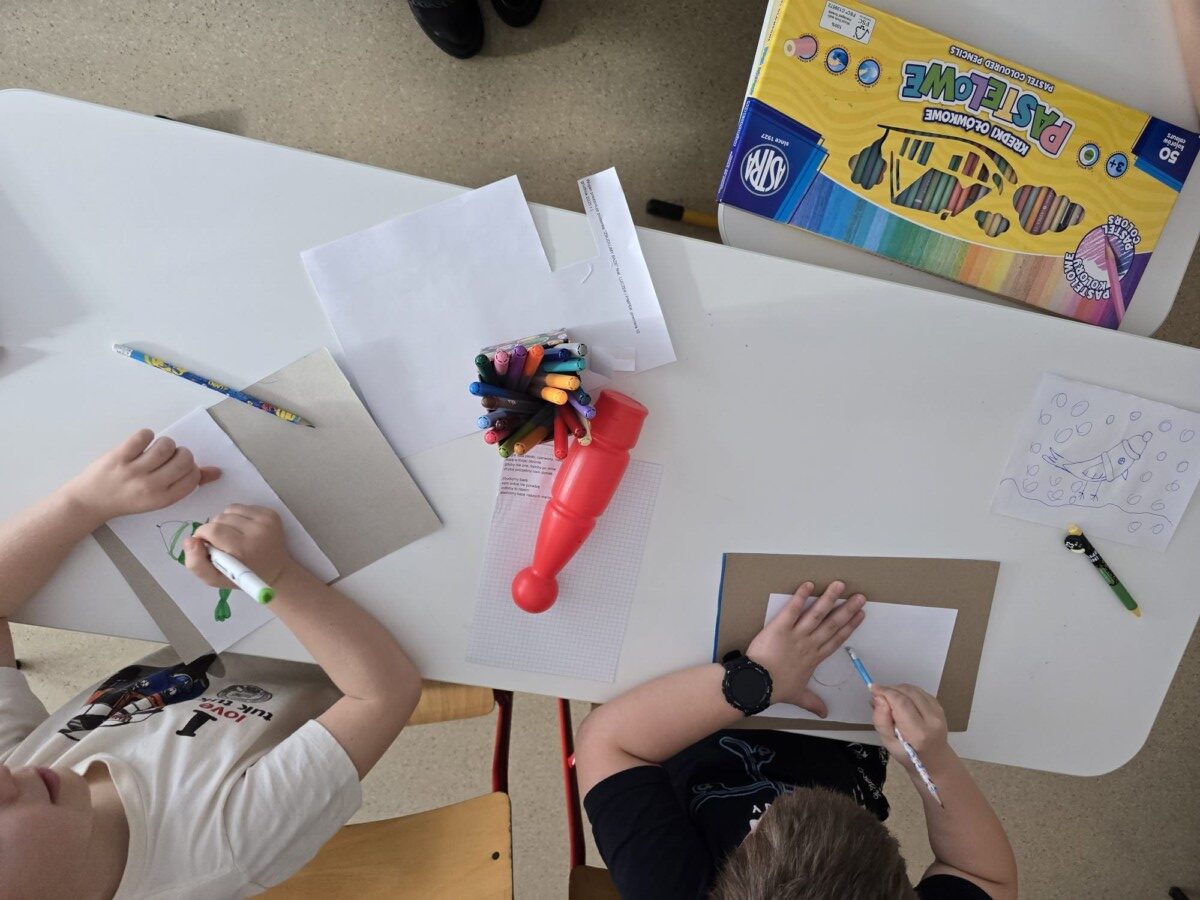 Na zakończenie zajęć uczniowie nauczyli się, jak narysować ptaka krok po kroku. Każdy mógł pokolorować swoją pracę według własnej inwencji twórczej. Powstały piękne i pomysłowe rysunki.