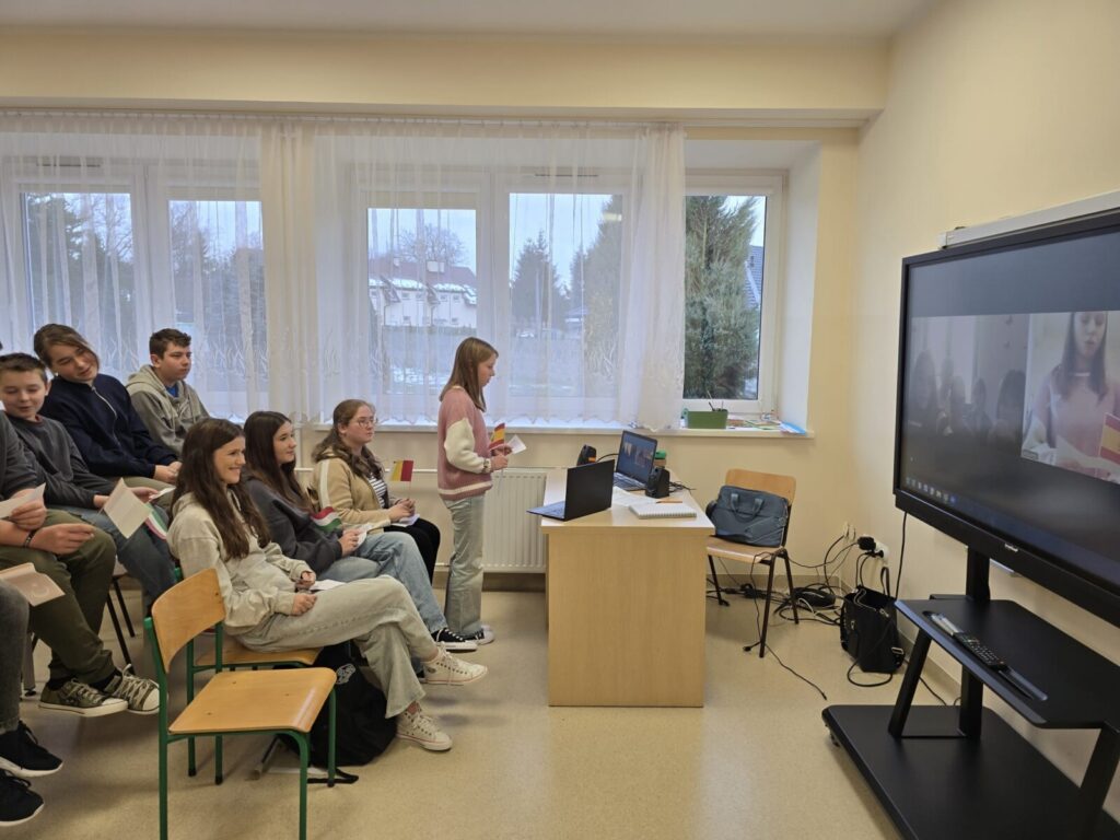 Uczniowie klasy siódmej, którzy realizują projekt, rozmawiali z kolegami z Rumunii (uczniami klasy dziewiątej). W kameralnej atmosferze uczestnicy przedstawili się, opowiedzieli krótko o sobie, swoich pasjach oraz zainteresowaniach. Była to doskonała okazja do praktycznego wykorzystania języka angielskiego w autentycznej sytuacji komunikacyjnej.