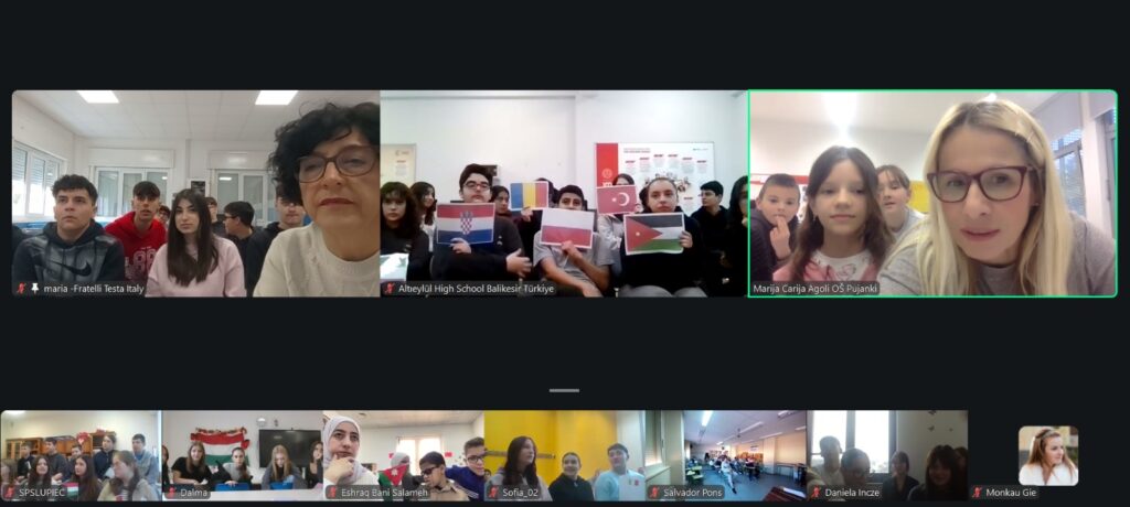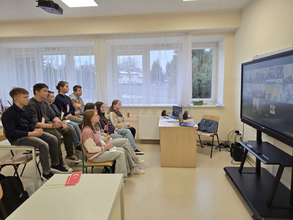 W listopadzie nauczyciele oraz uczniowie biorący udział w projekcie eTwinning uczestniczyli w wyjątkowej międzynarodowej lekcji online, podczas której mieli okazję spotkać się i lepiej poznać swoich partnerów z innych krajów. Dla wielu uczniów było to pierwsze spotkanie na żywo z rówieśnikami z zagranicy, co wzbudziło wiele emocji i radości.