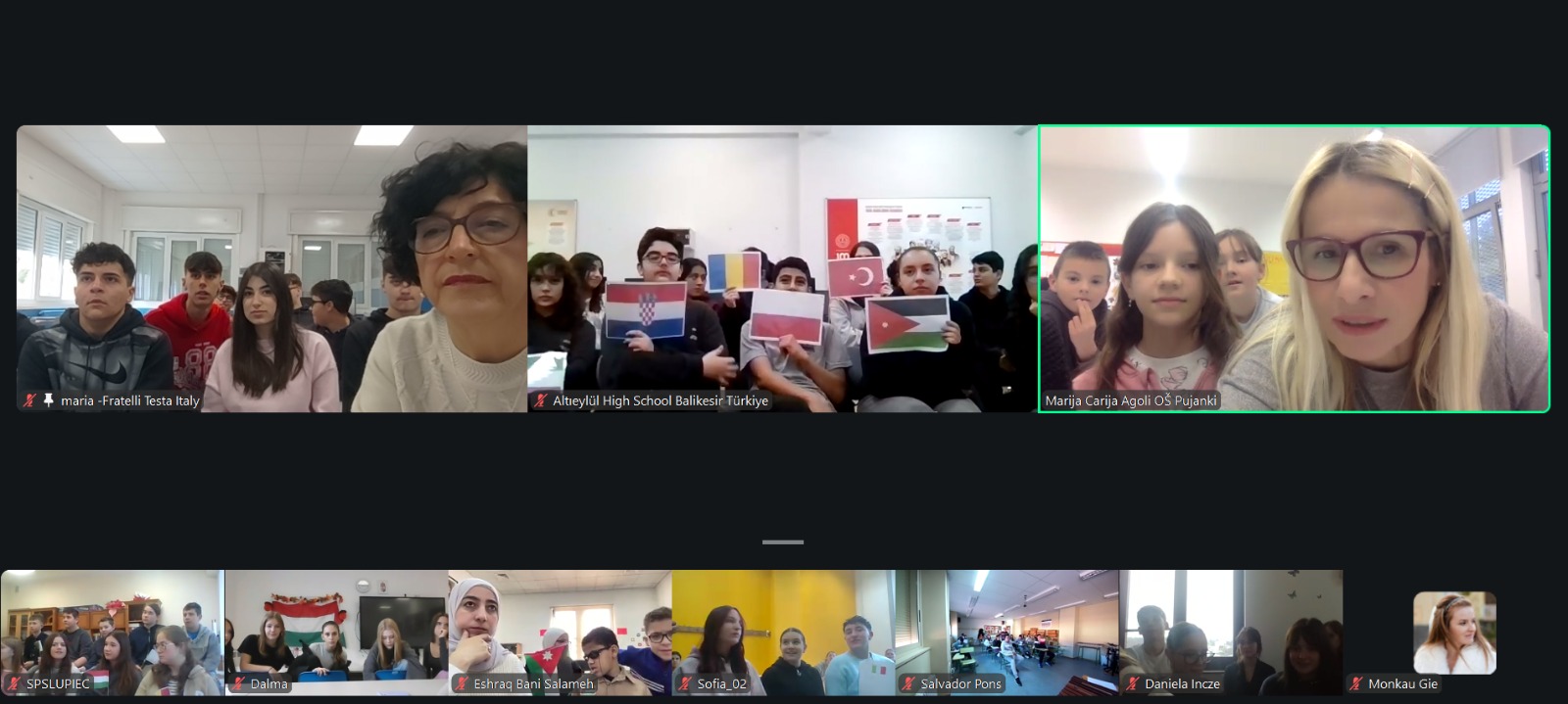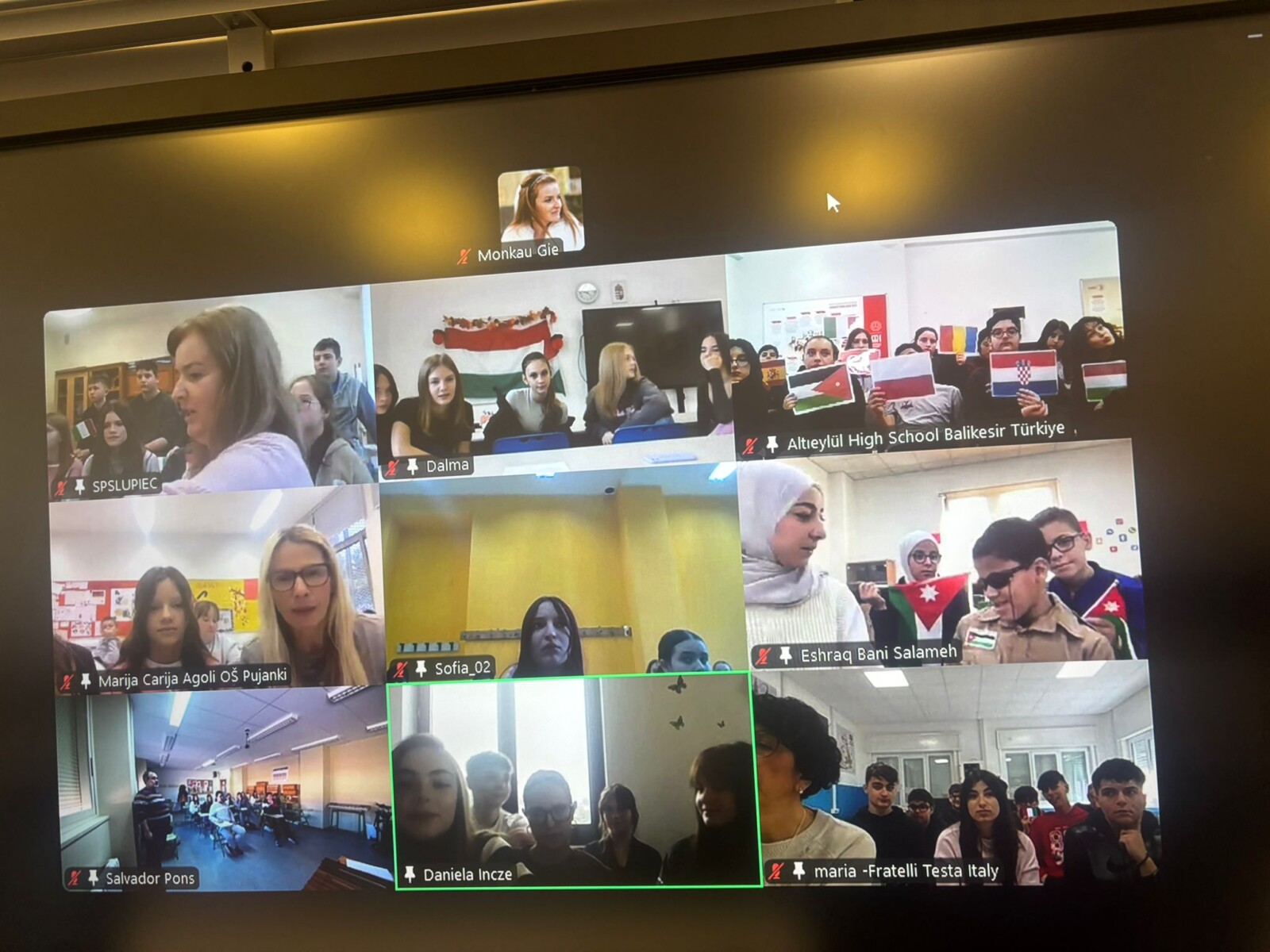 W listopadzie nauczyciele oraz uczniowie biorący udział w projekcie eTwinning uczestniczyli w wyjątkowej międzynarodowej lekcji online, podczas której mieli okazję spotkać się i lepiej poznać swoich partnerów z innych krajów. Dla wielu uczniów było to pierwsze spotkanie na żywo z rówieśnikami z zagranicy, co wzbudziło wiele emocji i radości.