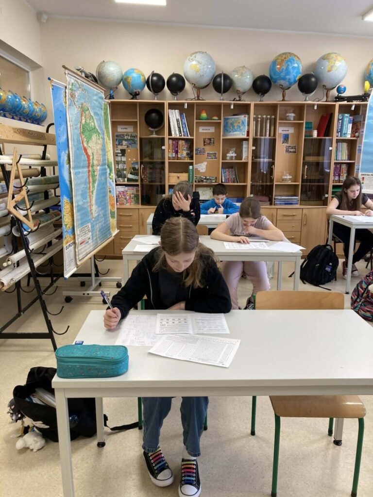 W czwartek 19 marca 2026 r. dziewięcioro najlepszych matematyków z naszej szkoły uczestniczyło w Międzynarodowym Konkursie Matematycznym „ KANGUR”. Organizatorem konkursu w Polsce jest Towarzystwo Upowszechniania Wiedzy i Nauk Matematycznych w Toruniu. Konkurs jest organizowany niemal na całym świecie. Uczniowie zmierzyli się z nietypowymi zadaniami o różnym stopniu trudności w trzech kategoriach. Mimo pełnego skupienia i ogromnej koncentracji, w sali panowała niezwykle pozytywna atmosfera. Na twarzach uczestników, obok wysiłku intelektualnego, gościł szczery uśmiech i radość z rozwiązywania kolejnych łamigłówek. Każdy uczeń otrzymał pamiątkowy upominek „ pokręconą układankę”. Z niecierpliwością czekamy na wyniki konkursu, trzymamy kciuki za naszych uczniów i życzymy powodzenia!