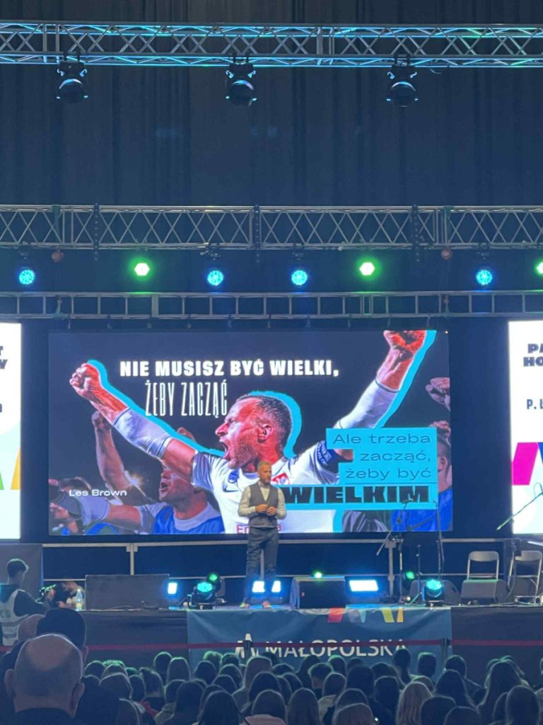 Dnia 9 października uczniowie naszej szkoły pod opieką księdza Krzysztofa oraz pań Joanny i Pauliny wybrali się do Tarnowa na wyjątkowe warsztaty „Powstań i żyj – to tylko stres”. Wydarzenie odbyło się w Arenie Jaskółka i zgromadziło około dwóch tysięcy uczniów z różnych szkół. Spotkanie miało charakter profilaktyczno–ewangelizacyjny i jego głównym celem było pokazanie młodym ludziom, że stres jest naturalną częścią życia, której nie da się całkowicie wyeliminować, ale można nauczyć się go oswajać i przemieniać w siłę do działania.