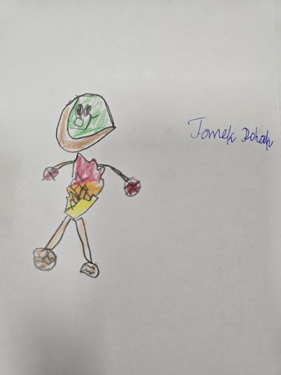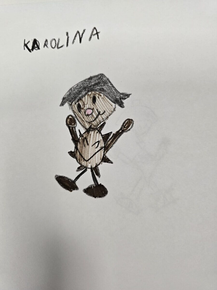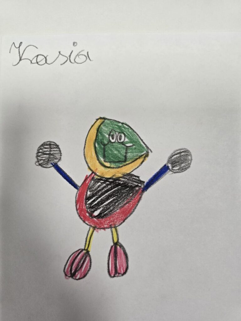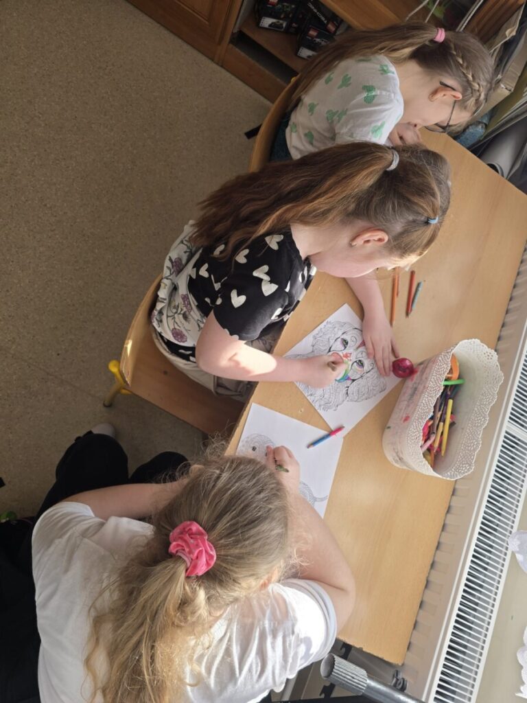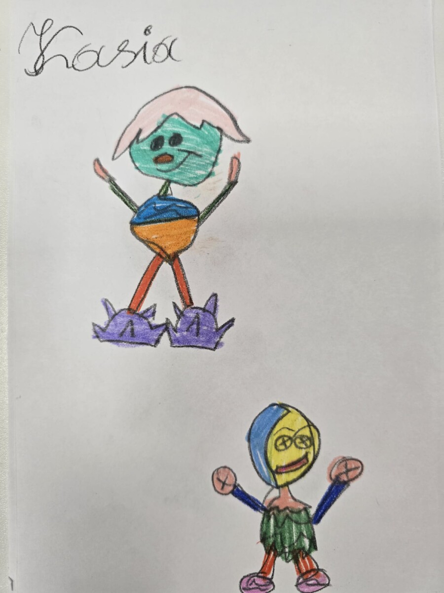 - Prace plastyczne – wykonanie rysunku jako formy przedstawienia się w ramach międzynarodowego projektu eTwinning „Sharing smiles, making friends”.