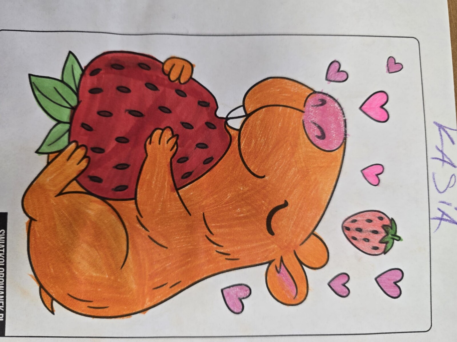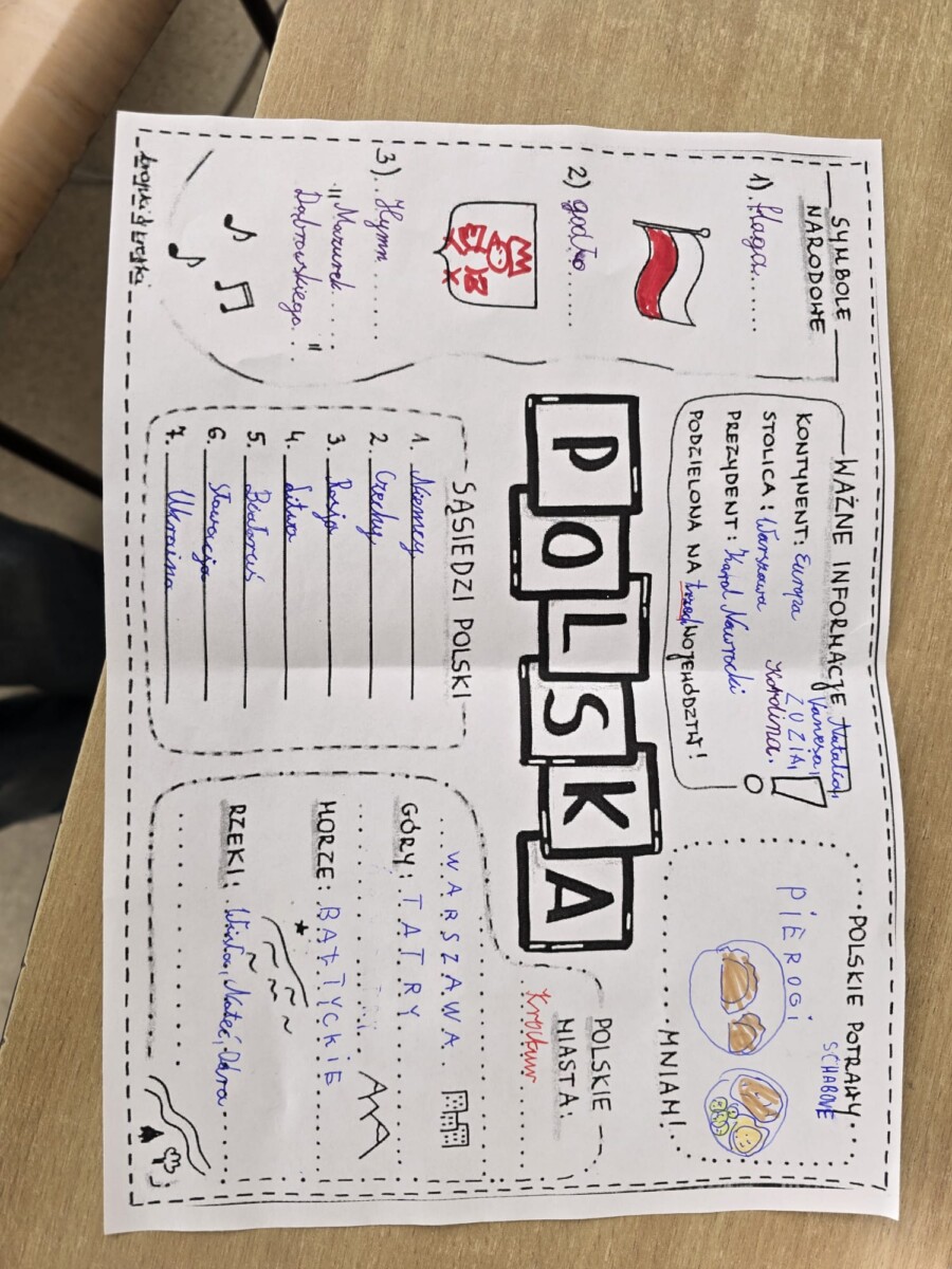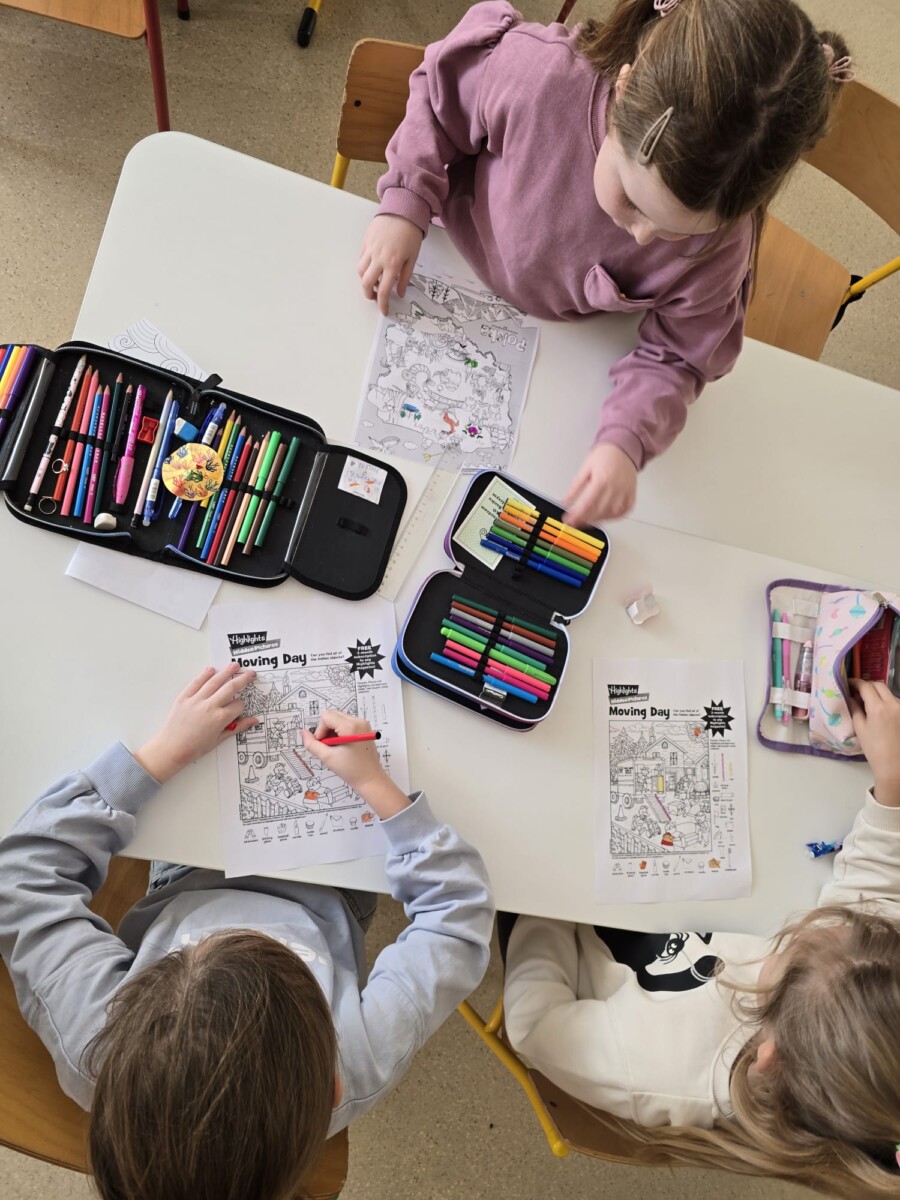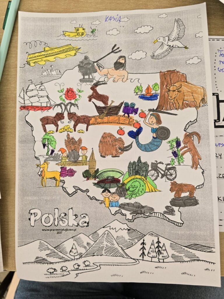 - Prace plastyczne – wykonanie rysunku jako formy przedstawienia się w ramach międzynarodowego projektu eTwinning „Sharing smiles, making friends”.
