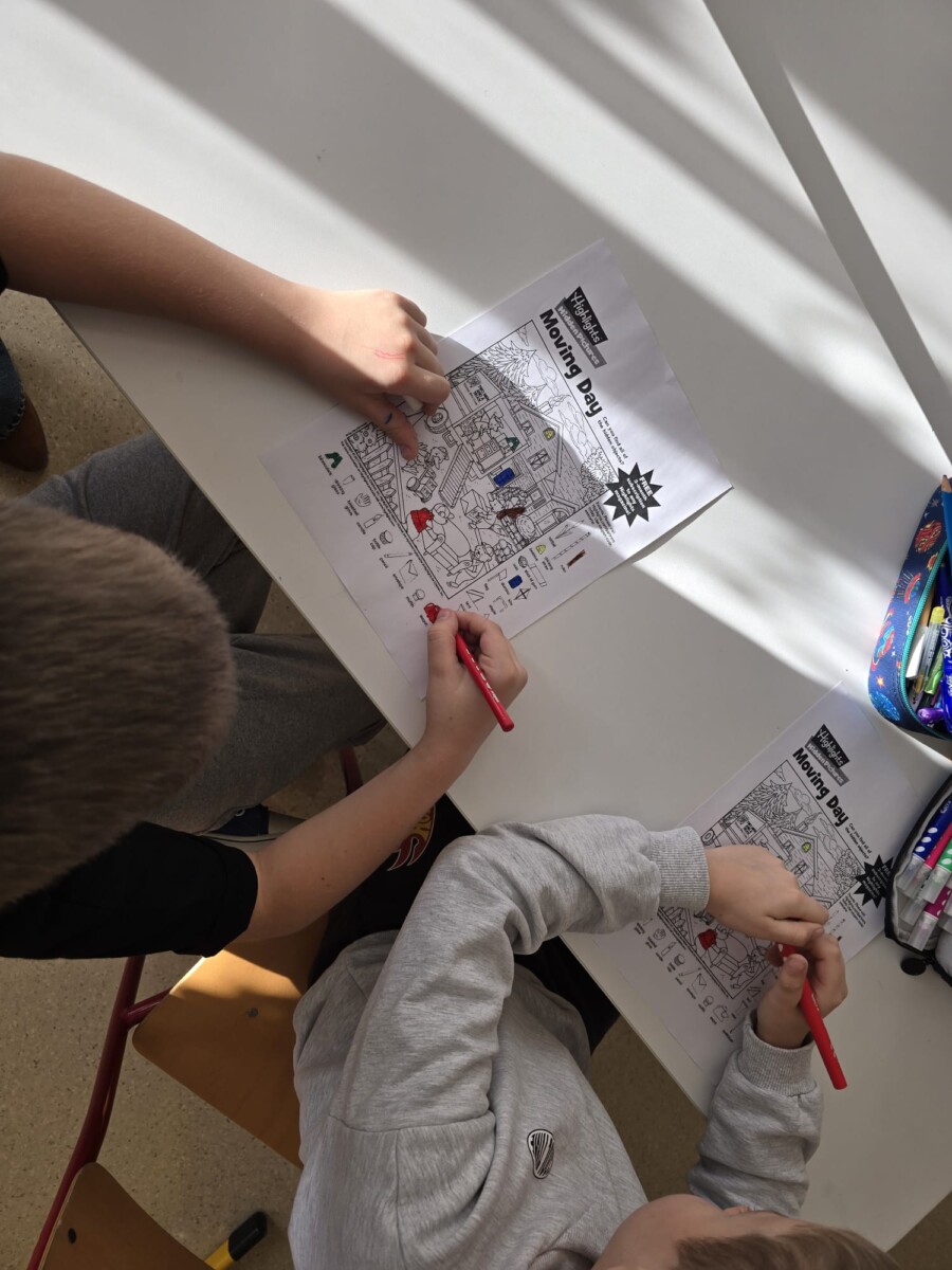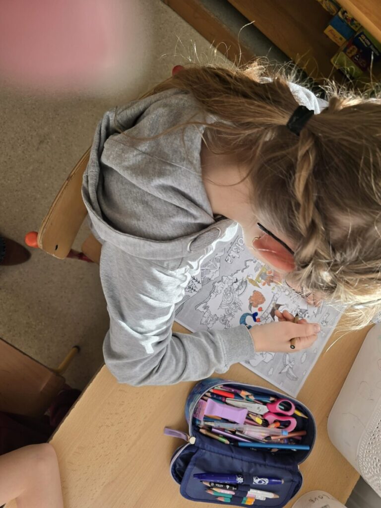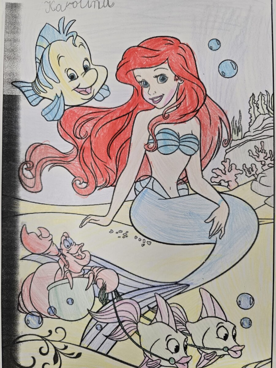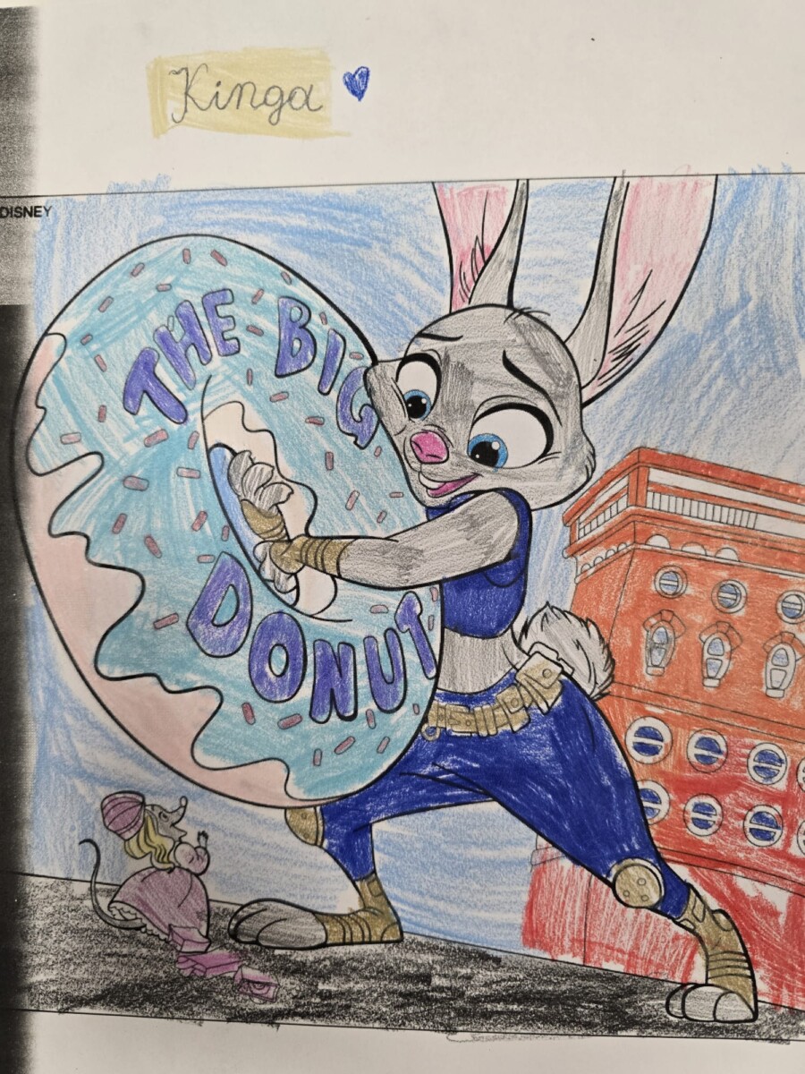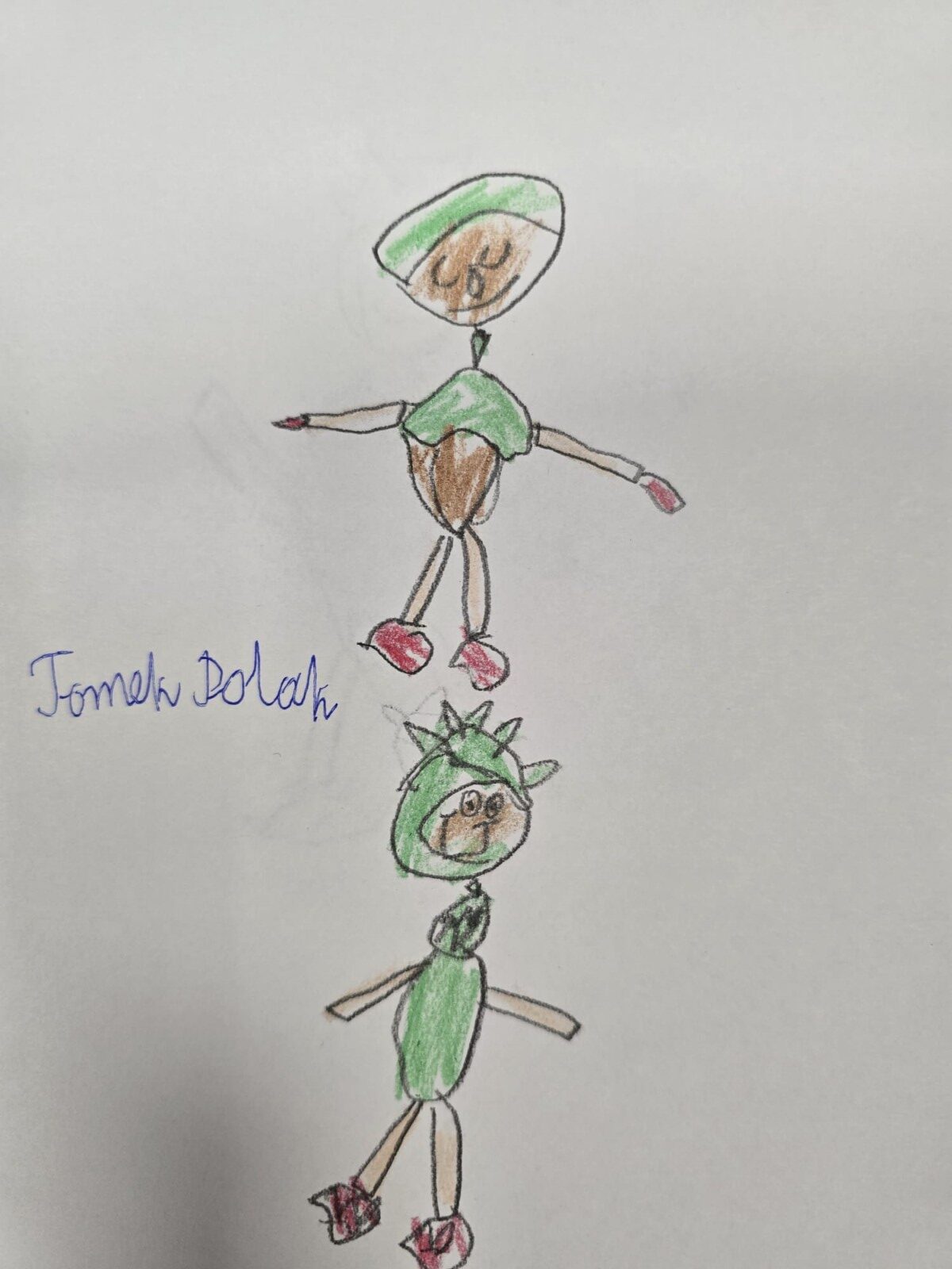 - Prace plastyczne – wykonanie rysunku jako formy przedstawienia się w ramach międzynarodowego projektu eTwinning „Sharing smiles, making friends”.