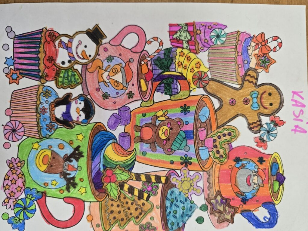 - wykonywały portrety Świętego Mikołaja dowolną techniką plastyczną – powstały niezwykle barwne i pomysłowe prace,