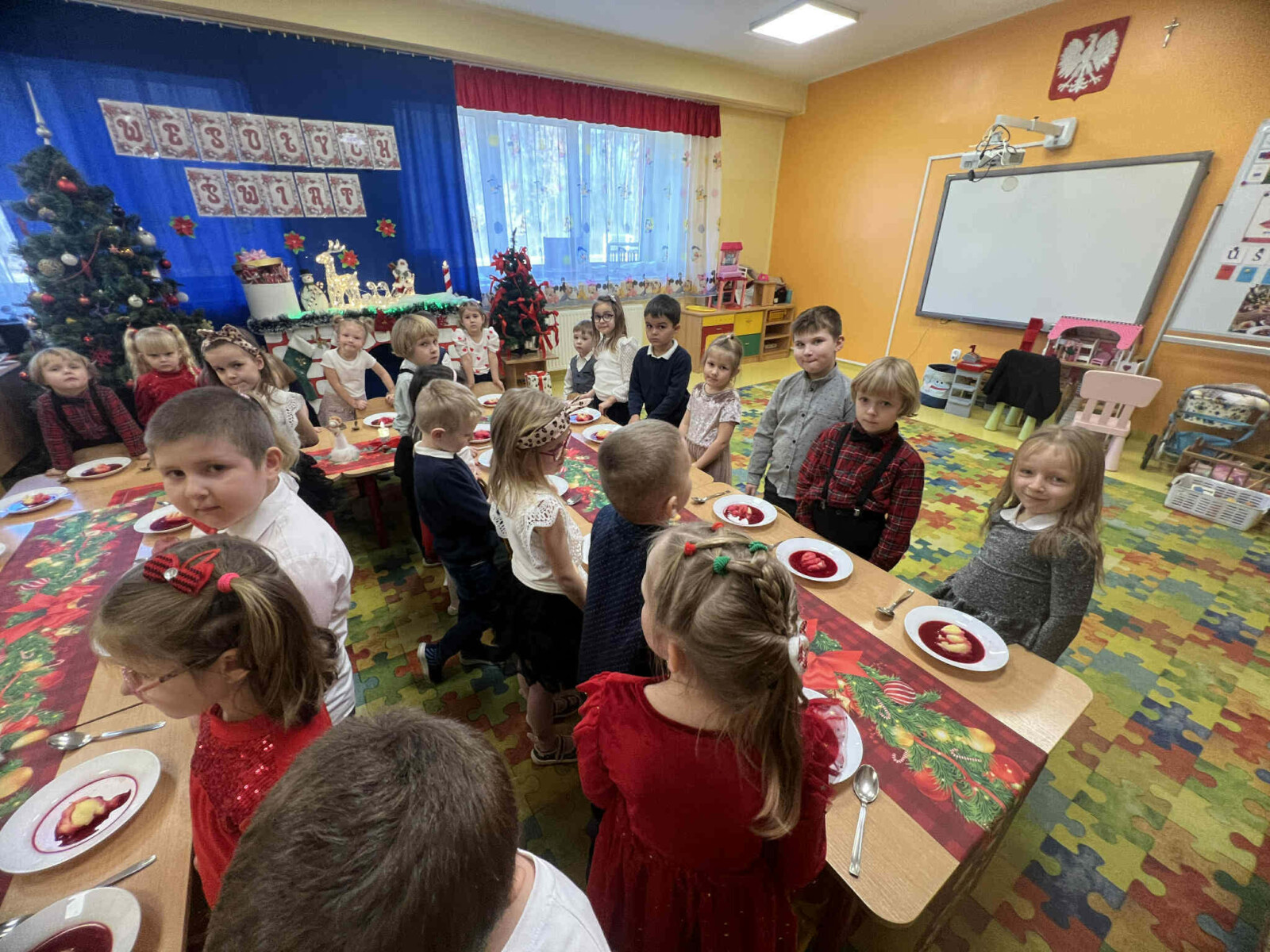 Dzieci z radością łamały się opłatkiem, składały sobie życzenia oraz wspólnie kolędowały. Był to piękny czas pełen radości, budowania wspólnoty, bliskości i ciepła, pielęgnujący bożonarodzeniowe tradycje