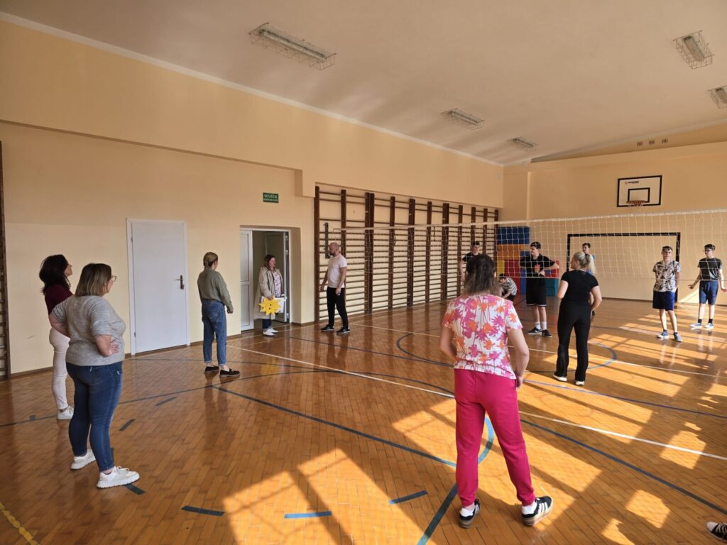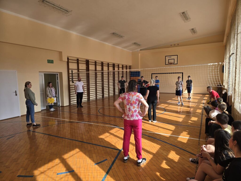 Ogromne emocje wzbudził długo wyczekiwany mecz siatkówki: nauczyciele kontra uczniowie. Sala gimnastyczna wypełniła się kibicami, a doping i śmiech towarzyszyły każdej akcji. Na twarzach wszystkich gościły uśmiechy, a zacięta rywalizacja dostarczyła mnóstwo radości.