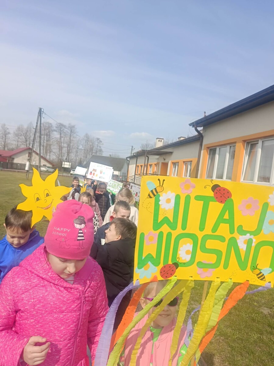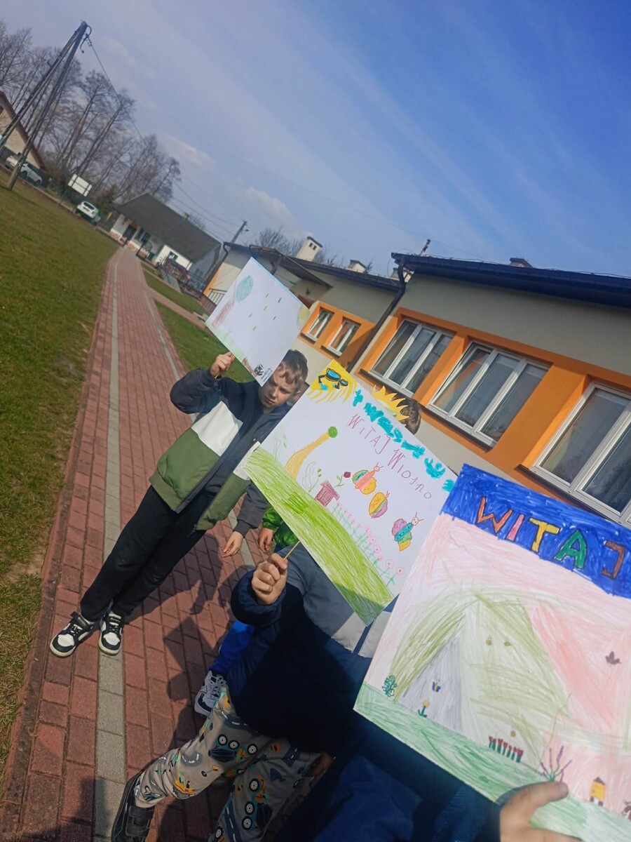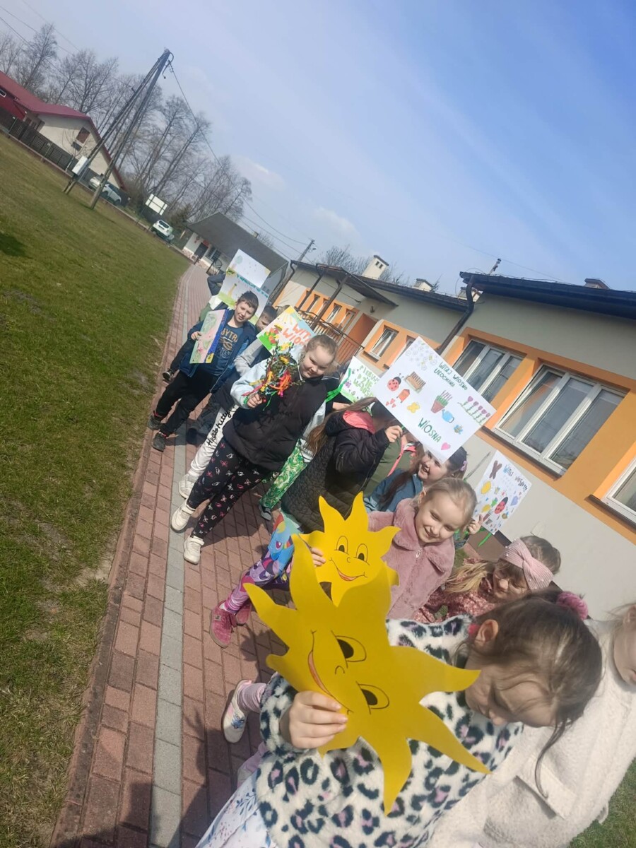 Na zakończenie tego wyjątkowego dnia wszyscy uczniowie wzięli udział we wspólnym spacerze z kolorowymi transparentami z hasłem „Witaj wiosno!”. Uczniowie szukali na spacerze pierwszych oznak wiosny. Był to piękny i radosny finał pełen uśmiechów, który na długo pozostanie w naszej pamięci jako dzień integracji i wspólnego świętowania nadejścia wiosny.