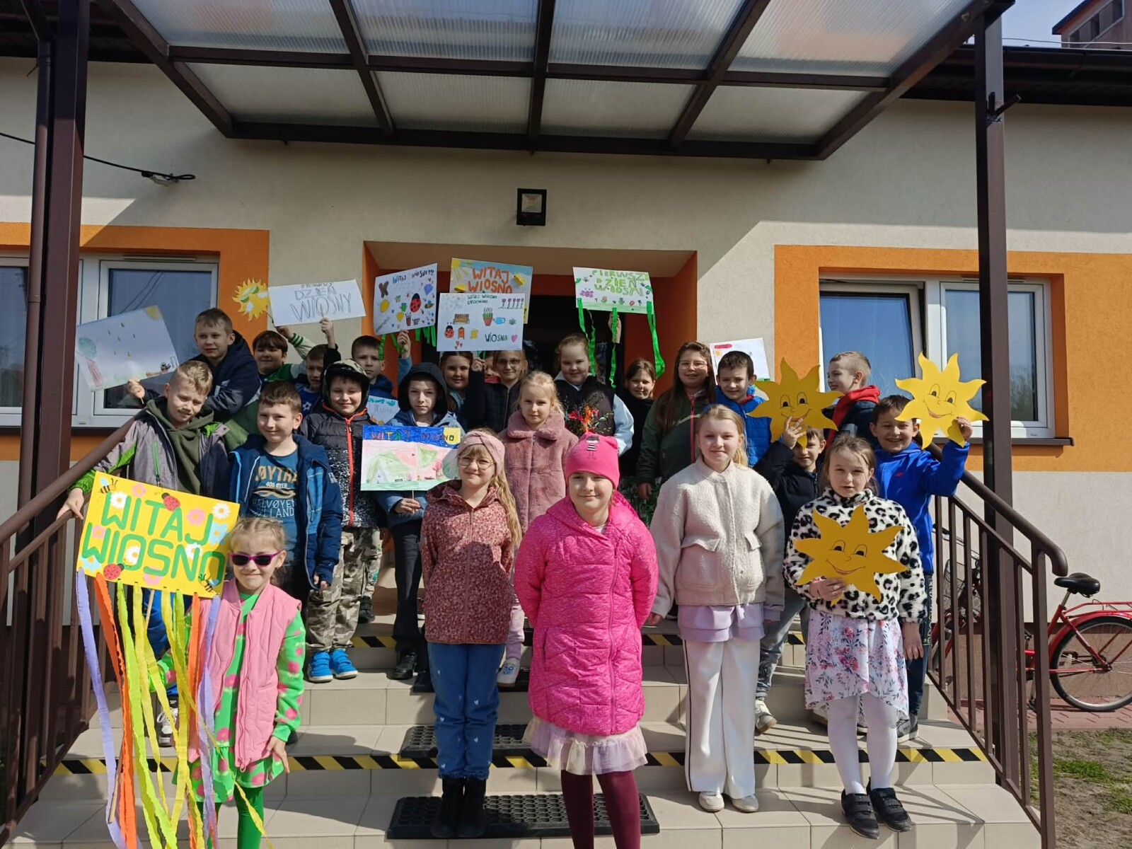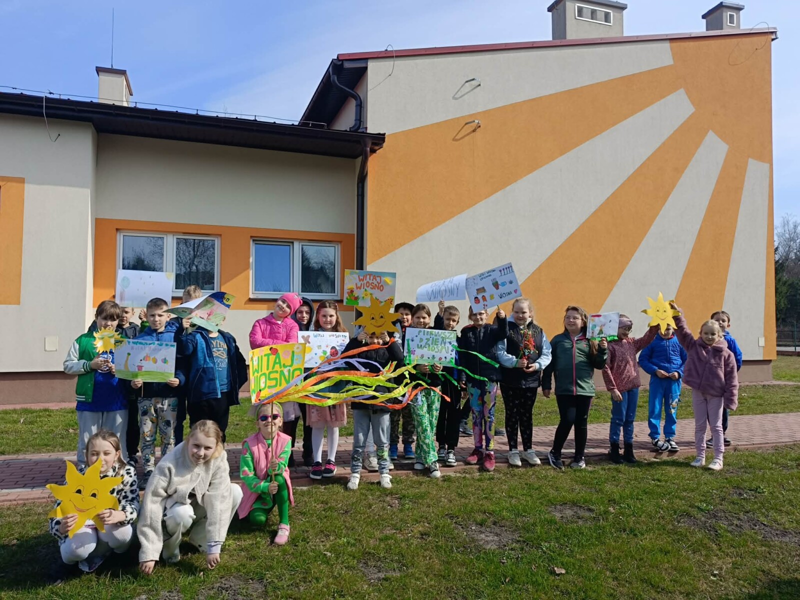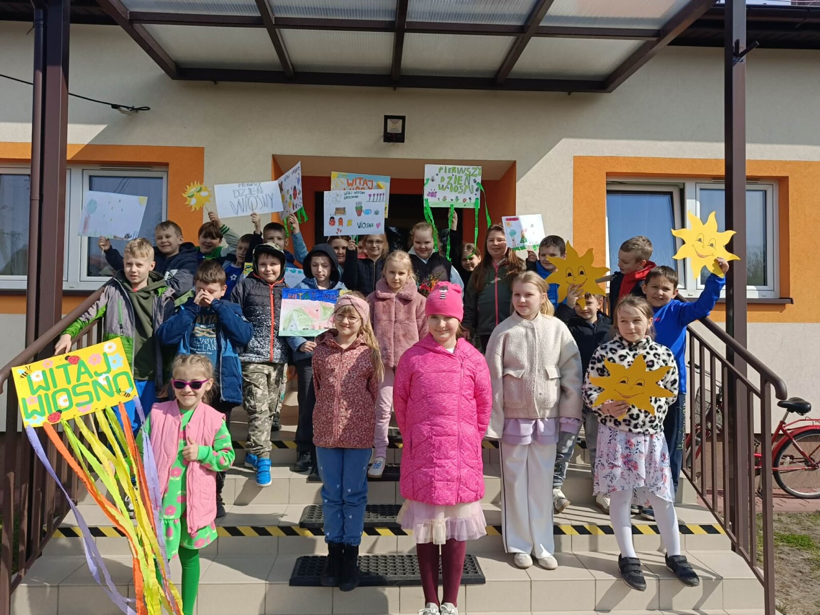 Na zakończenie tego wyjątkowego dnia wszyscy uczniowie wzięli udział we wspólnym spacerze z kolorowymi transparentami z hasłem „Witaj wiosno!”. Uczniowie szukali na spacerze pierwszych oznak wiosny. Był to piękny i radosny finał pełen uśmiechów, który na długo pozostanie w naszej pamięci jako dzień integracji i wspólnego świętowania nadejścia wiosny.