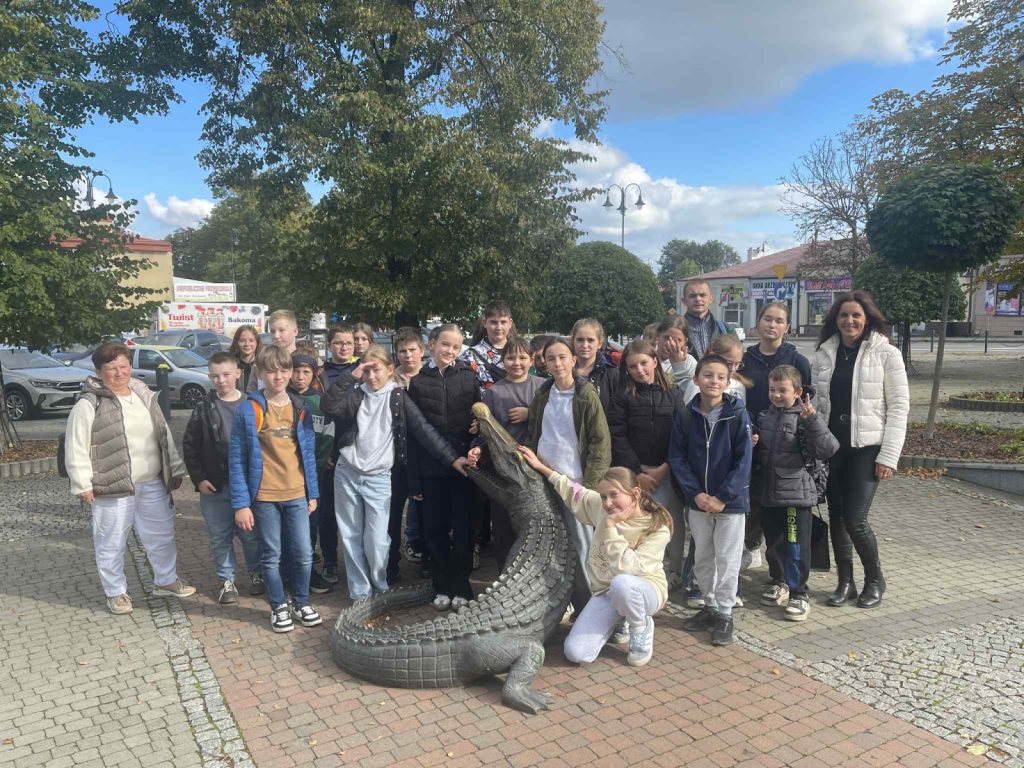 Jednym z punktów programu był także spacer po deptaku wzdłuż malowniczej rzeki Nil. To właśnie tam nauczyciel geografii opowiedział uczniom o afrykańskim Nilu, nawiązując do jego znaczenia i różnorodności przyrody. Zwrócił uwagę, że choć znajdujemy się w Kolbuszowej, to i tutaj mamy swój „Nil”, a w opowieściach pojawiły się nawet krokodyle. Dzięki temu wycieczka stała się nie tylko lekcją historii, ale również lekcją geografii, pokazującą, jak różne światy można ze sobą łączyć w edukacyjnej przygodzie.